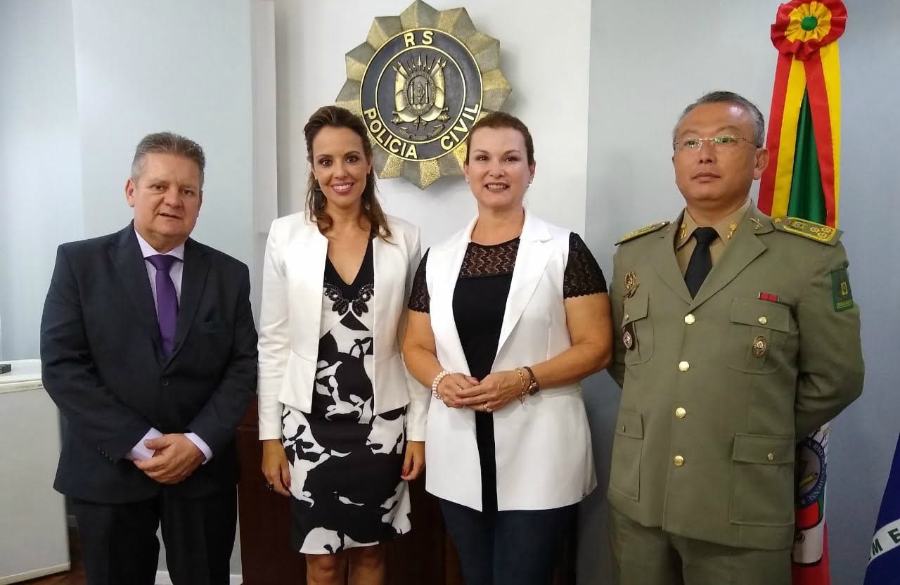 No momento que antecedeu a cerimônia de posse, a presidente da Amvrs aproveitou para conversar com o vice-goverrnador e secretário de Segurança Pública do RS Ranolfo Vieira Junior e com o comandante- geral da Brigada Militar coronel Mário Ikeda, ambos prestigiando a posse da delegada que teve também a participação do governador Eduardo Leite.
