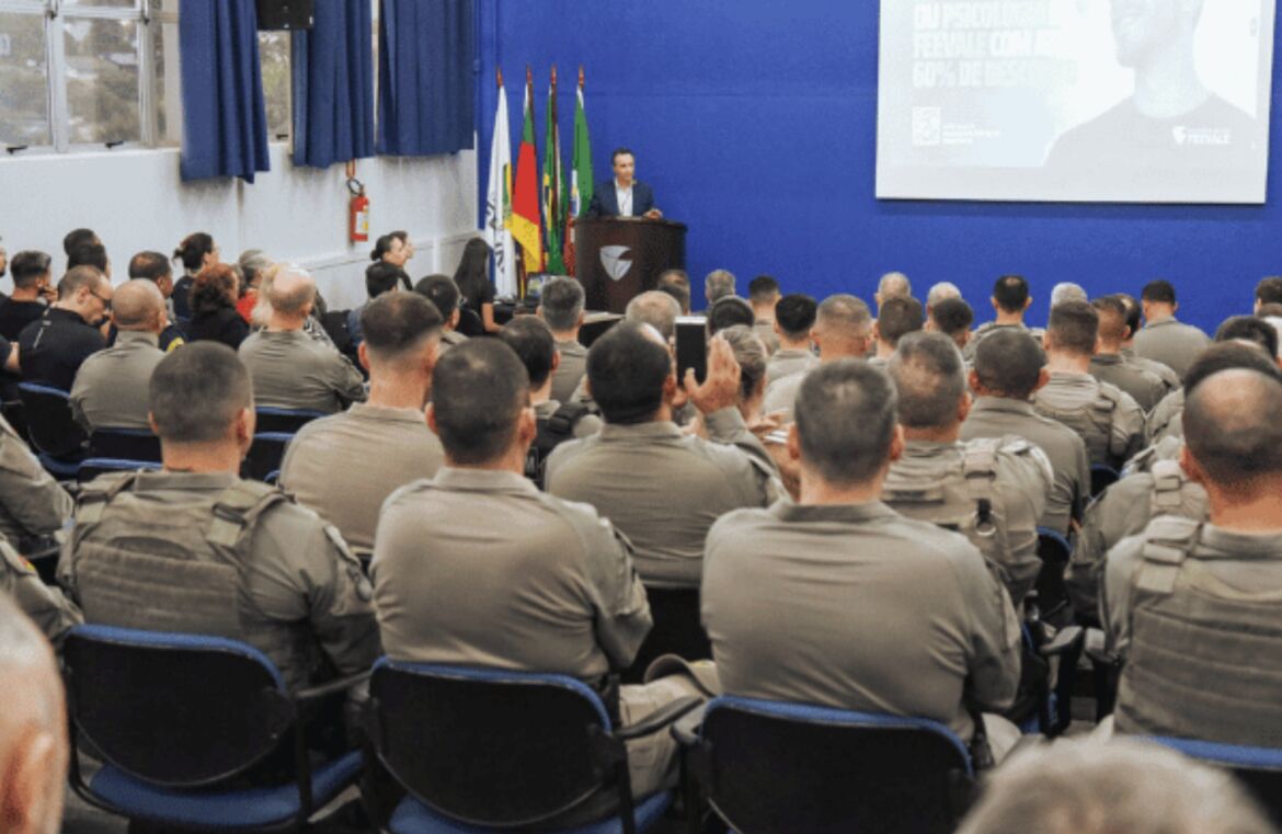 No auditório do prédio Azul da Instituição, no Câmpus II, integrantes da Brigada Militar, Polícia Civil, Corpo de Bombeiros Militar, Guarda Municipal, estudantes de Psicologia e agentes patrimoniais da Feevale ouviram a palestra sobre abordagem humanizada e tentativas de suicídio, do coronel Diógenes Martins Munhoz, do Corpo de Bombeiros de São Paulo.