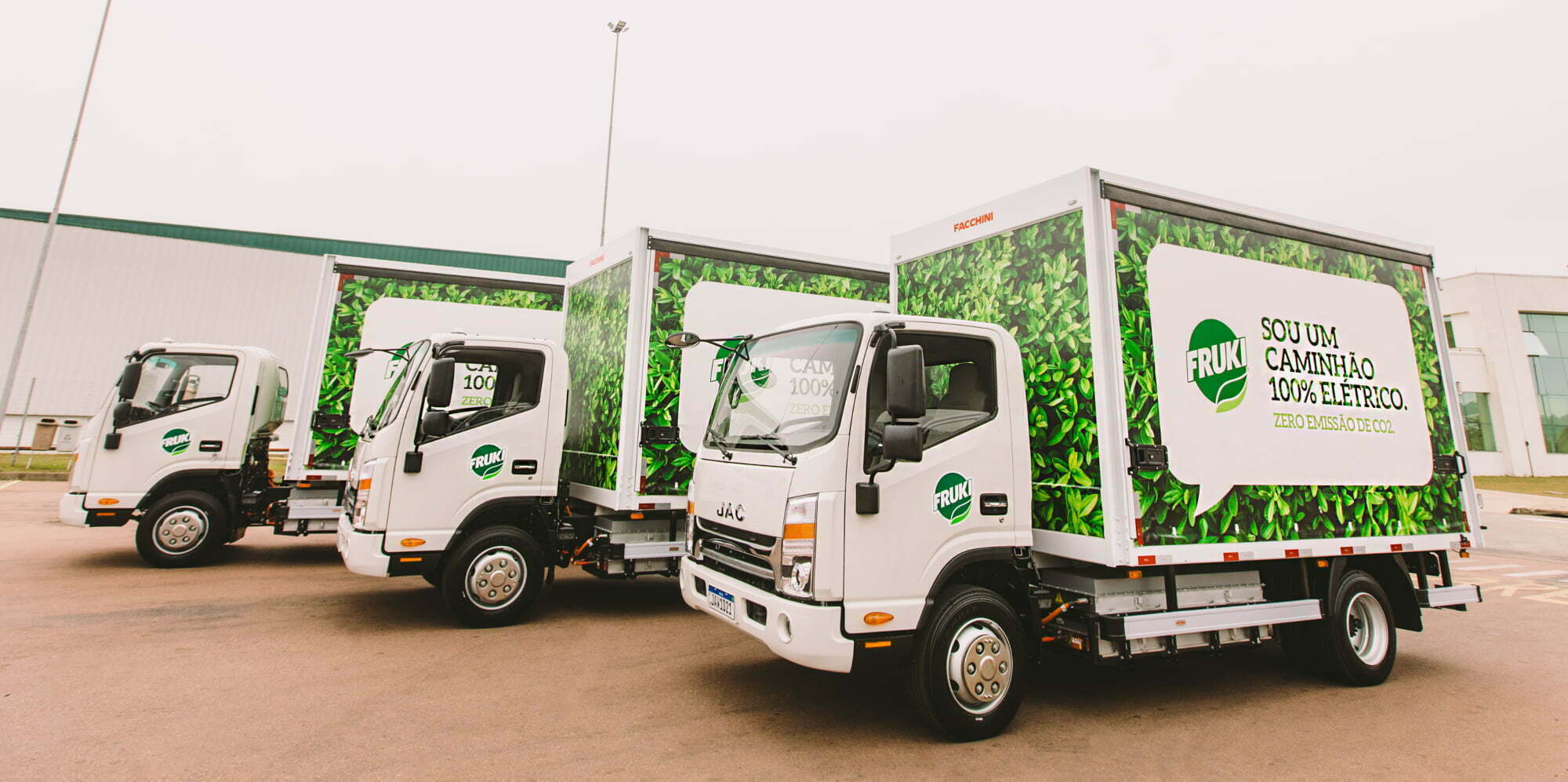 Com a operação inicial de três caminhões elétricos na logística da Bebidas Fruki, haverá uma redução de 2,04% nas emissões atmosféricas da empresa, o que equivale a menos 13,8 toneladas de CO²eq (equivalente, unidade de medida das emissões de gases do efeito estufa), conforme metodologia GHG Protocol para o período de um ano. O modelo adotado é um JAC iEV 1200T, primeiro caminhão elétrico do Brasil. Os caminhões são equipados com baterias recarregáveis com autonomia de 250 km. “Além do benefício ambiental, também há um ganho de mobilidade nos centros urbanos e uma melhora da qualidade de vida para os profissionais de distribuição, pois os caminhões são mais silenciosos e ergonômicos”, destaca o gerente de logística da Bebidas Fruki, Daniel Coelho.