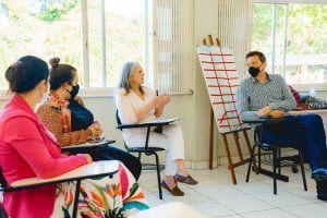 Ainda na terça-feira, à tarde, o Cemea sediou o encontro mensal dos parceiros Verde Sinos, reunião de trabalho entre os municípios participantes do projeto, que neste momento finalizam o planejamento das ações da 4ª etapa. Até agora, oito cidades da bacia aderiram à nova fase. A coordenadoria do Verde Sinos aproveitou para visitar a Emei Bem Viver conferir os quintais agroflorestais e espécies da flora nativa no pátio da escola.