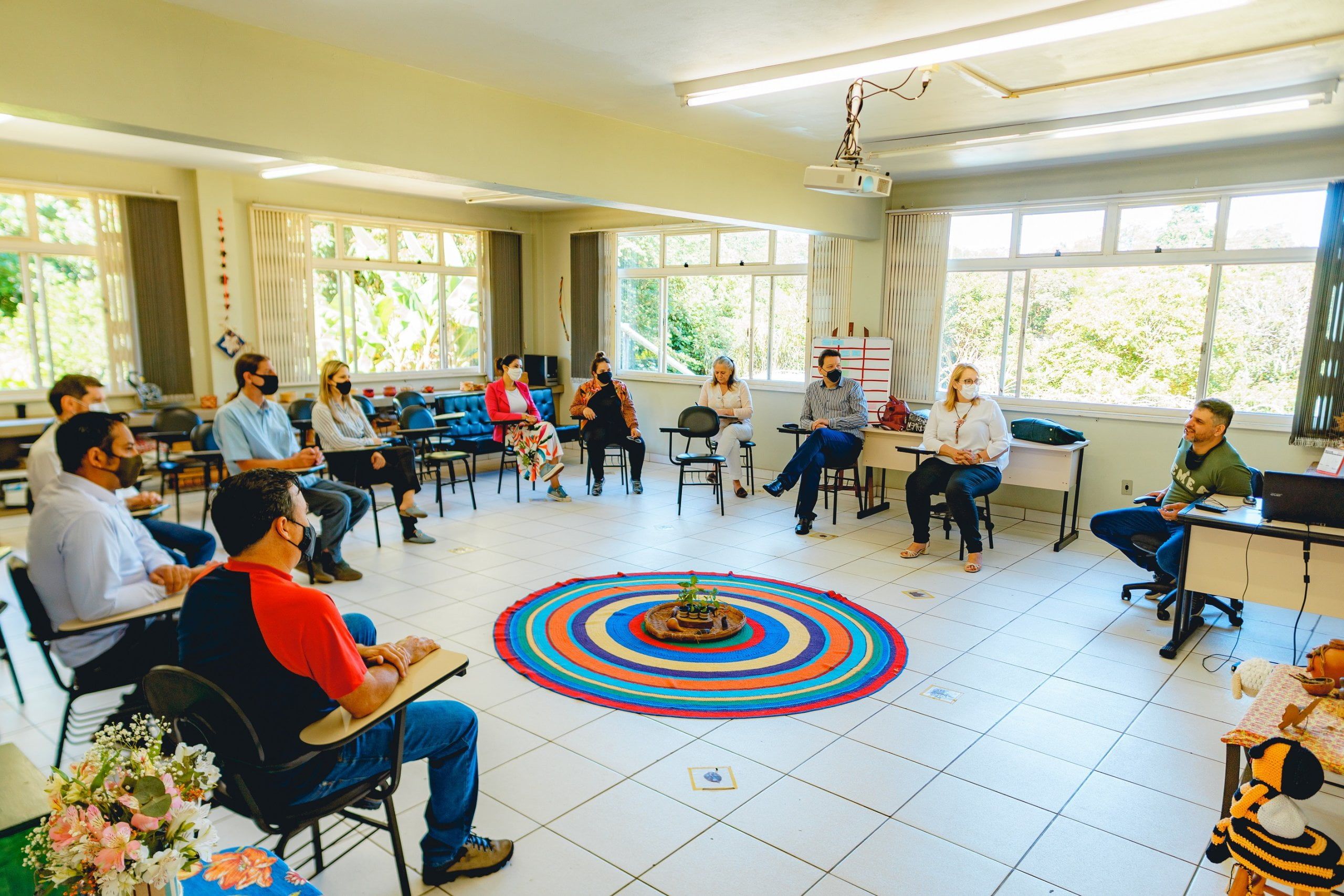 Ainda na terça-feira, à tarde, o Cemea sediou o encontro mensal dos parceiros Verde Sinos, reunião de trabalho entre os municípios participantes do projeto, que neste momento finalizam o planejamento das ações da 4ª etapa. Até agora, oito cidades da bacia aderiram à nova fase. A coordenadoria do Verde Sinos aproveitou para visitar a Emei Bem Viver conferir os quintais agroflorestais e espécies da flora nativa no pátio da escola.