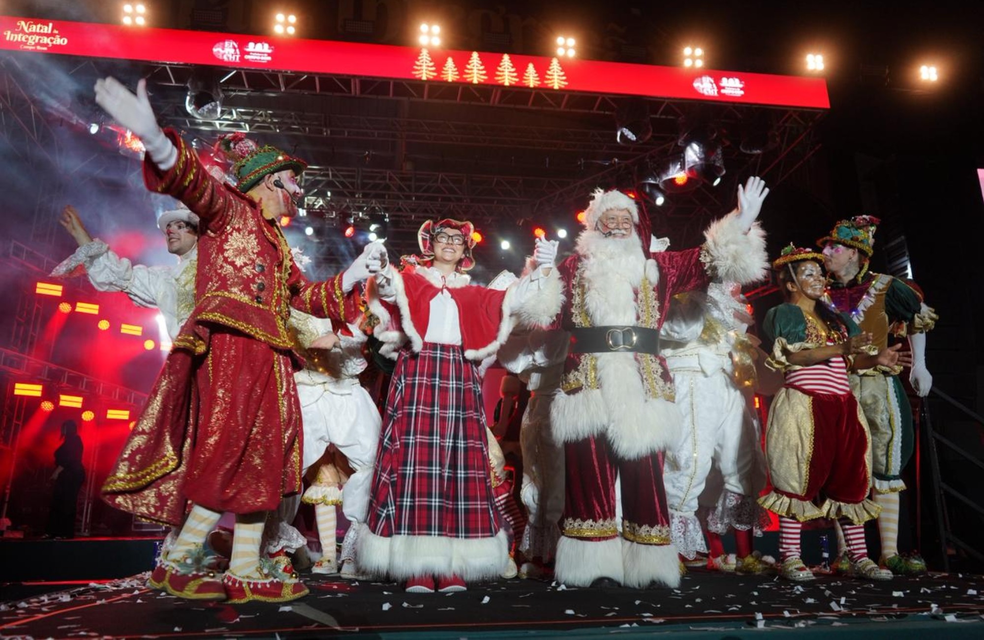 A noite contou ainda com a participação dos personagens que representam Maria, José e o Menino Jesus, integrando a agenda de apresentações inspiradas no tema religioso da celebração. A Parada de Natal, o ato ecumênico e o espetáculo A Magia do Noel também fizeram parte da programação de abertura.