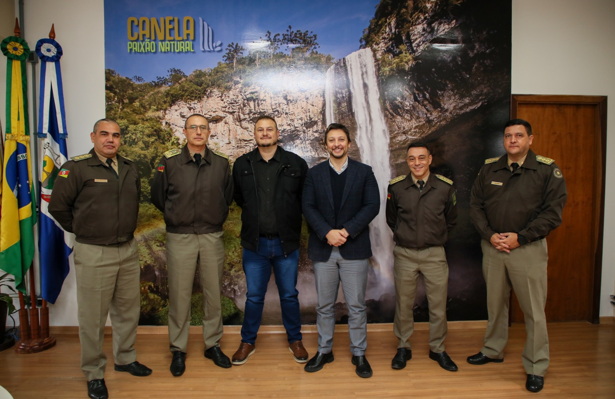 O prefeito de Canela, Gilberto Cezar, recebeu na manhã de quinta-feira (22) o comando da Brigada Militar (BM) e confirmou a ampliação do efetivo da corporação no município. Durante o encontro, realizado na Prefeitura, o comandante-geral da BM, coronel Cláudio dos Santos Feoli, anunciou que um capitão será transferido na próxima semana para assumir o comando local, além da chegada de mais policiais.