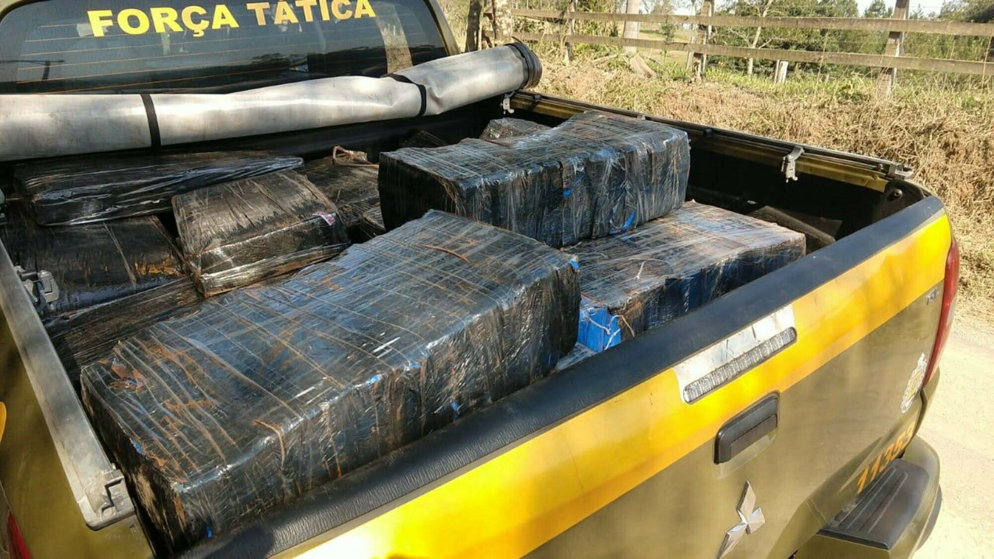 Na revista veicular foi localizado grande quantidade de maconha, aproximadamente 400 quilos, que foi apreendida e encaminhada à delegacia de polícia juntamente com o casal para lavratura do flagrante.