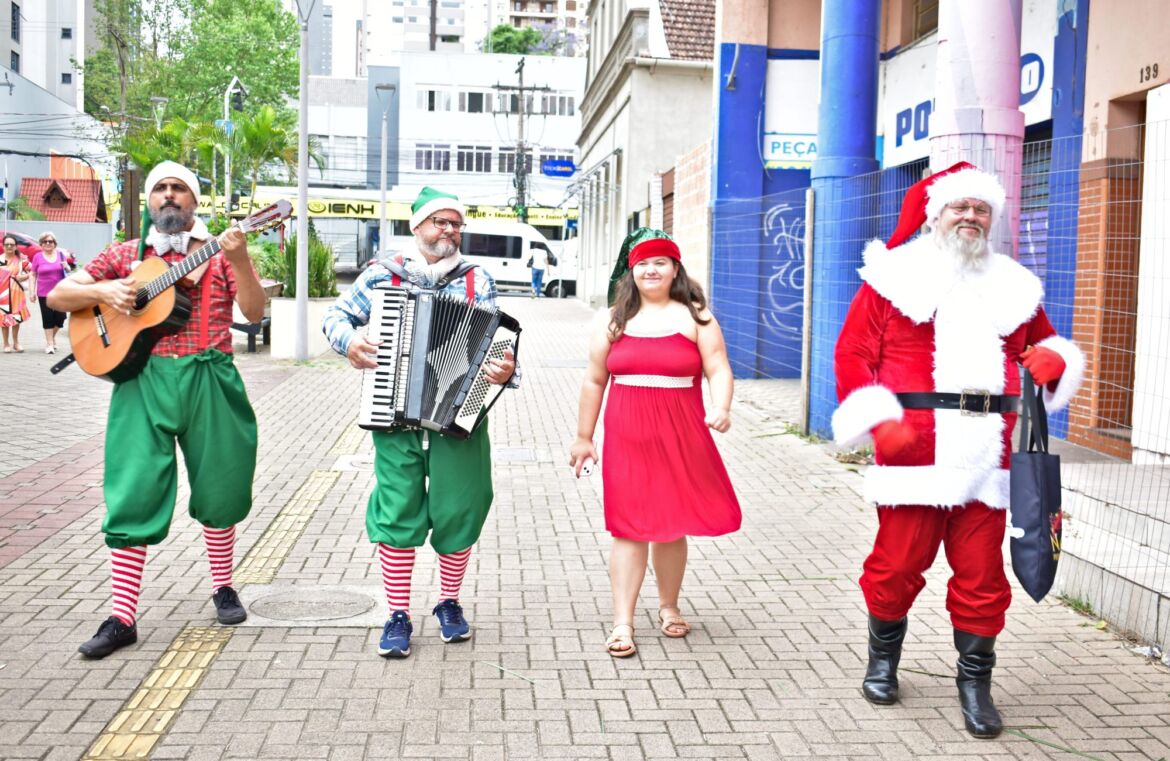 Na tarde da última sexta-feira (22), um cortejo natalino percorreu as ruas do centro, levando alegria a pedestres e lojistas. O evento foi promovido pela Câmara de Dirigentes Lojistas de Novo Hamburgo (CDL-NH) e tem como objetivo divulgar a campanha Natal Premiado, que oferece prêmios aos consumidores que realizarem compras nas lojas participantes.