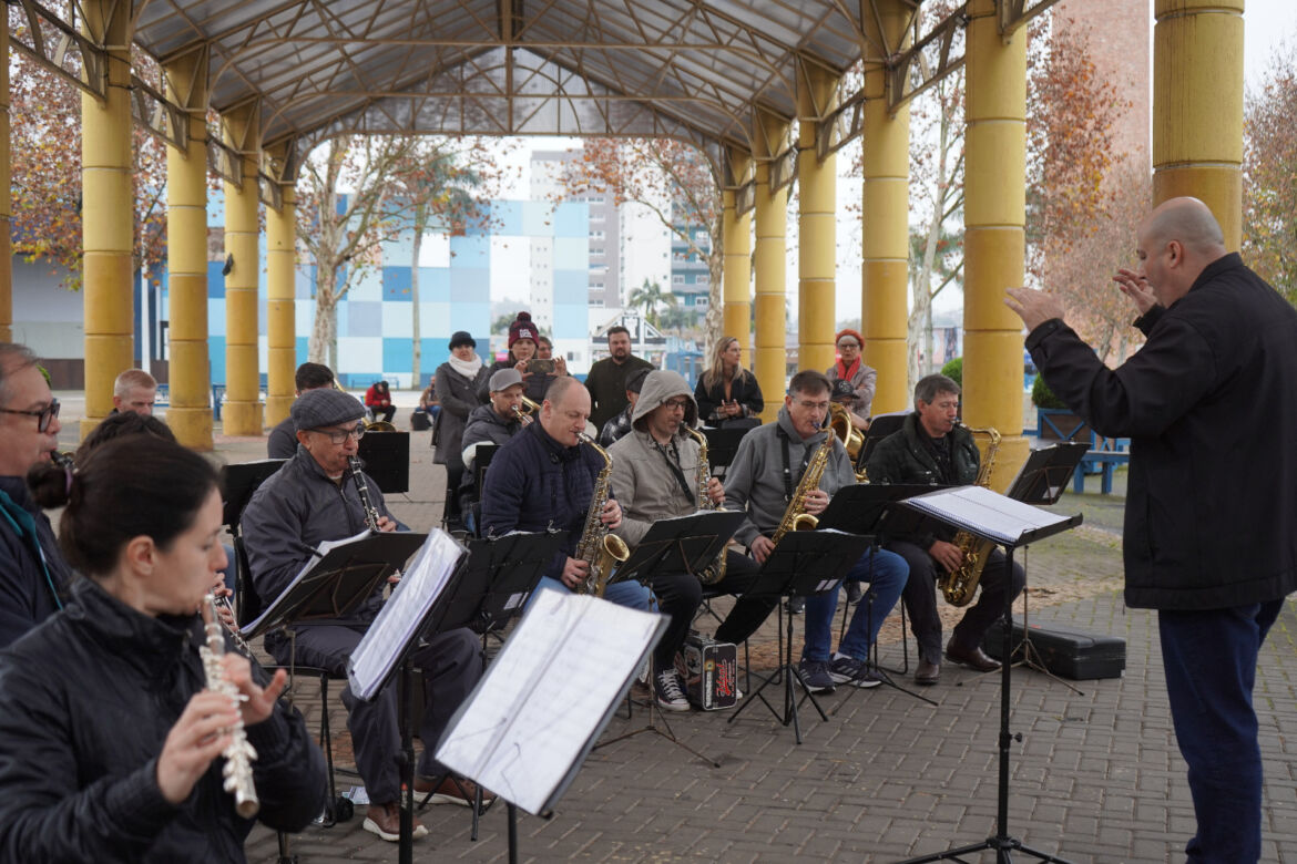 A Orquestra de Sopros de Novo Hamburgo (OSNH) retornou aos palcos neste domingo (13), após quatro meses de paralisação por falta de recursos. Com uma apresentação no Teatro Feevale que reuniu mais de 1.250 espectadores, o concerto também foi especial por celebrar o Dia Mundial do Rock, integrando a quinta edição do Rock in Concert, realizado pela orquestra em parceria com a banda The Dogs.