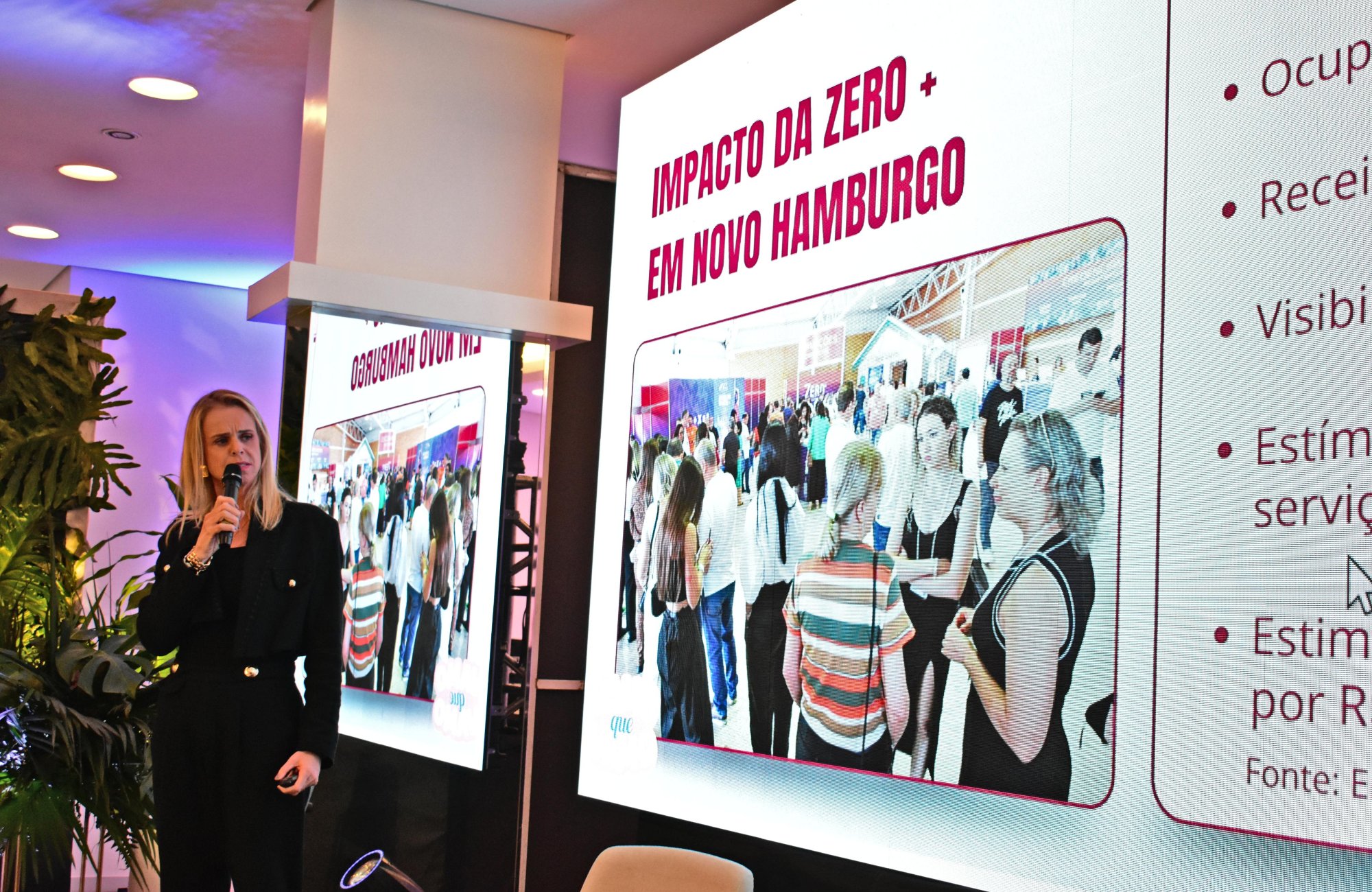Em sua fala, Roberta lembrou que a Zero+ já está em sua 15ª edição, após ser realizada exclusivamente em Gramado, e destacou a importância de Novo Hamburgo voltar a sediar uma feira de grande porte. O evento, no formato B2B (Business-to-Business), conecta indústria e varejo, gera networking e fortalece a economia local.