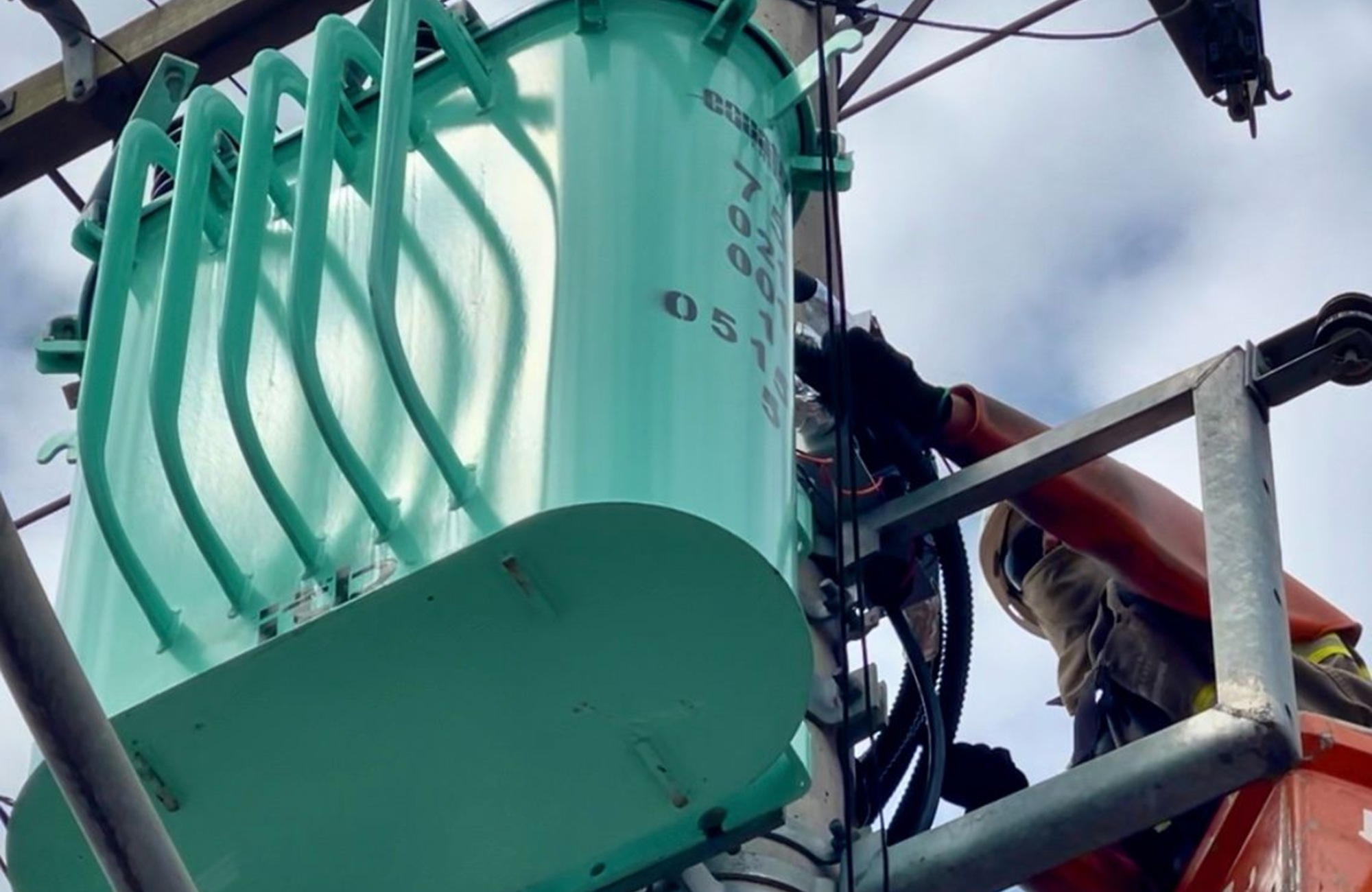 Esses transformadores podem ser identificados pela cor verde nos postes, representando o foco na operação sustentável.