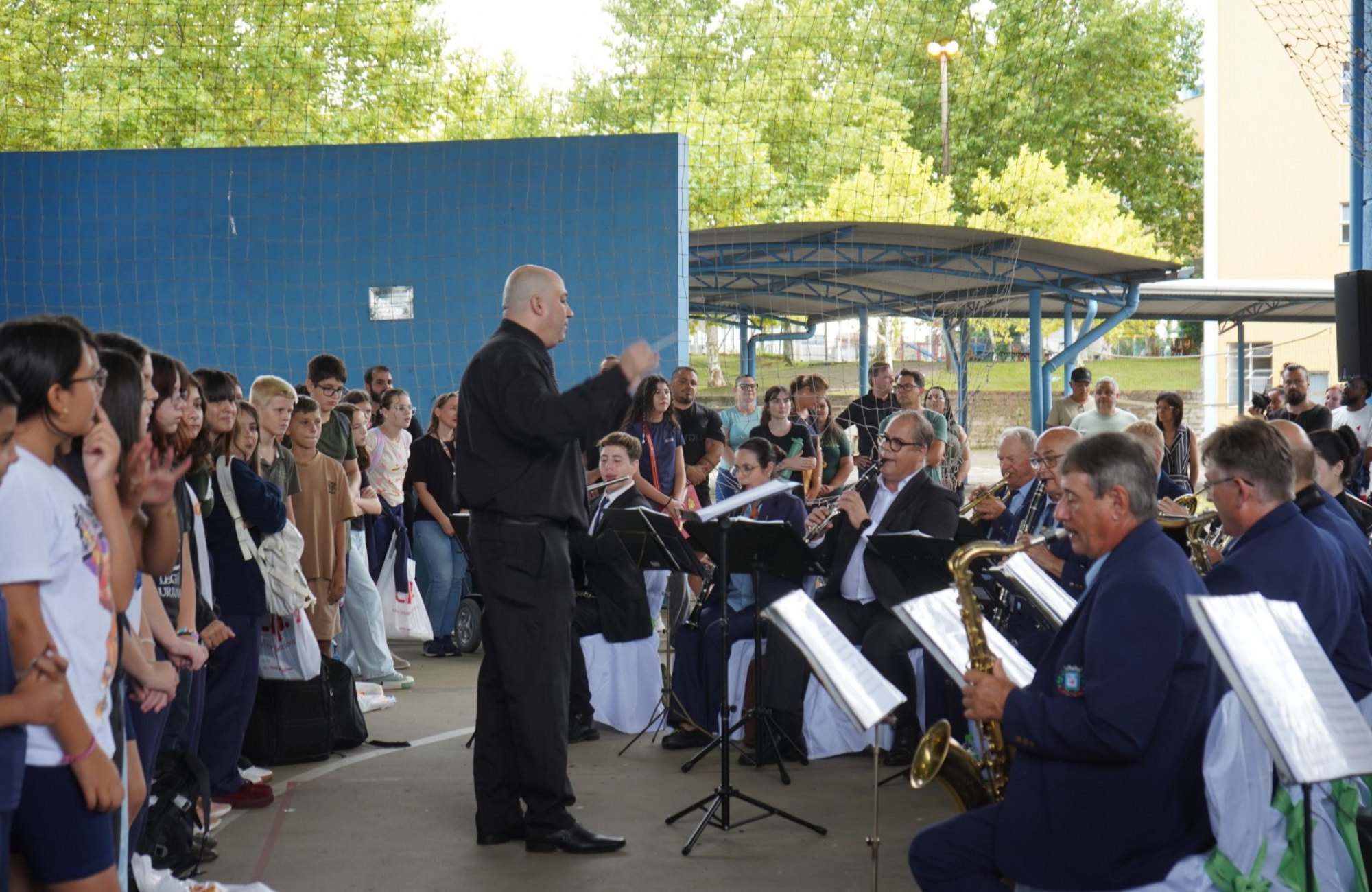 A Banda Municipal Guilherme Armando Dick e a Orquestra Jovem de Campo Bom participaram da cerimônia e executaram os hinos Nacional e de Campo Bom.