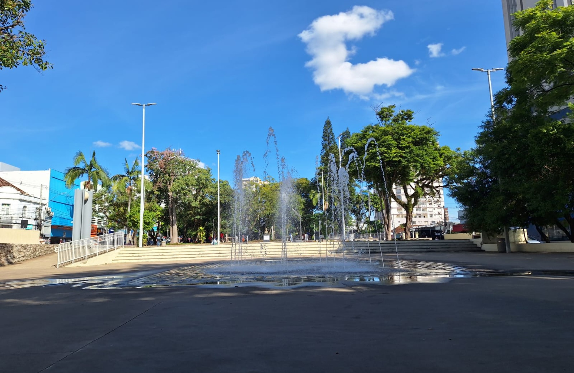 O chafariz da Praça do Imigrante de Novo Hamburgo, que estava inativo devido a problemas técnicos, foi reativado pela Prefeitura nesta terça-feira (22). A estrutura havia sido desligada por conta de falhas recorrentes no motor, especialmente após chuvas intensas. Segundo a administração municipal, a retomada do funcionamento foi possível por meio de parceria com a Comusa – Serviços de Água e Esgoto de Novo Hamburgo, que realizou os reparos necessários.