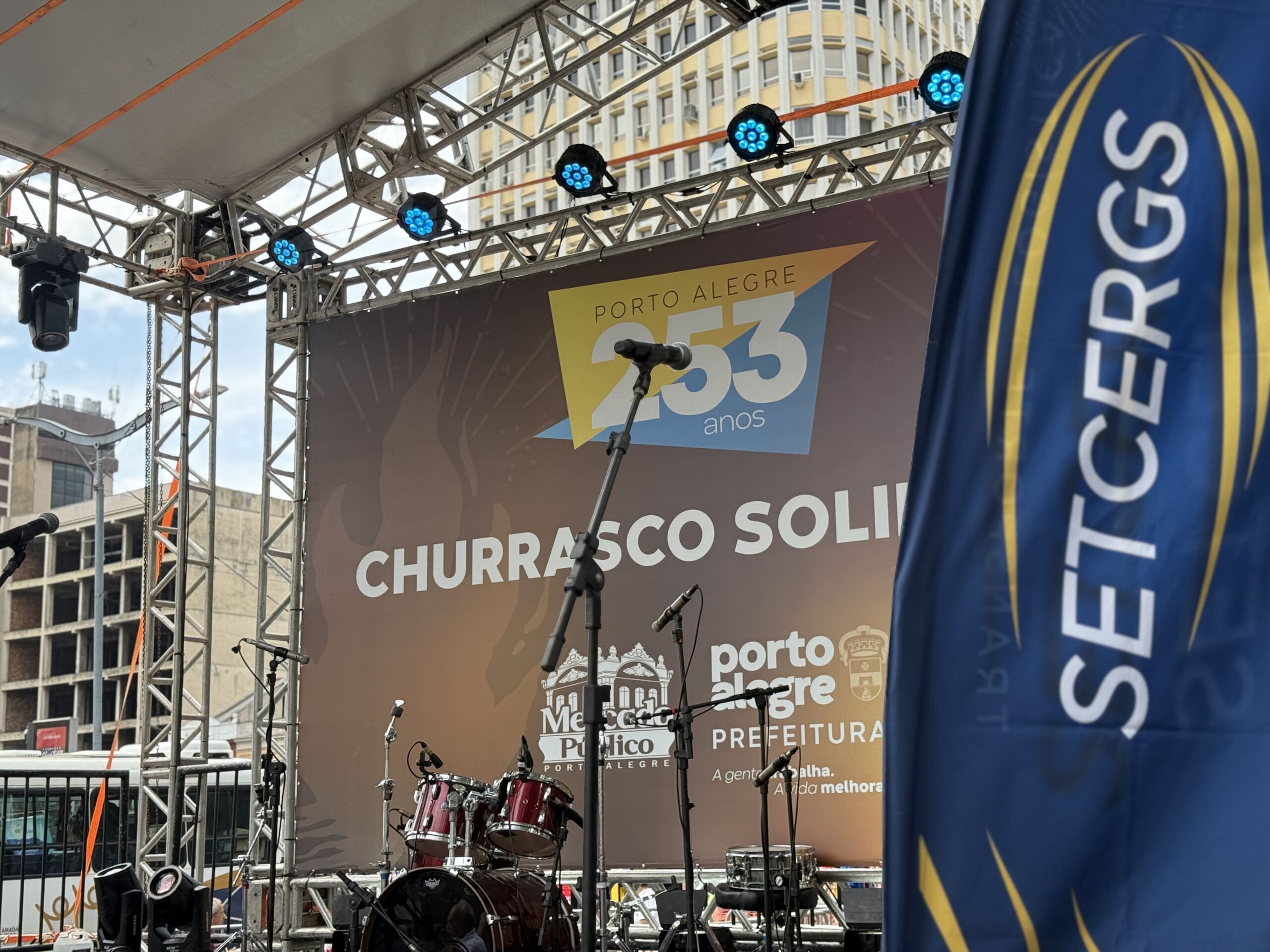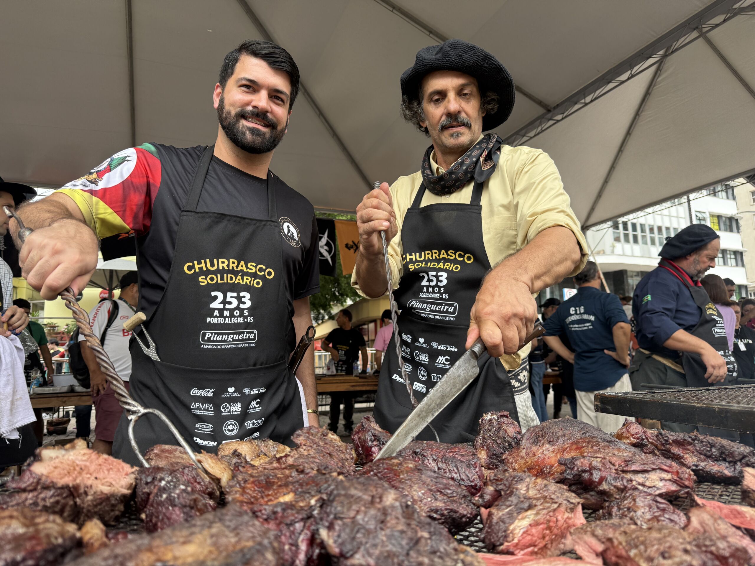 Um churrasco solidário marcou a comemoração dos 253 anos de Porto Alegre, reunindo milhares de pessoas em situação de vulnerabilidade no centro da cidade. O evento, promovido pela Associação dos Amigos do Mercado Público com apoio da prefeitura, por meio da Secretaria Municipal da Cultura, contou com a participação de 110 voluntários, que assaram 2 mil quilos de carne em 30 churrasqueiras. Também foram distribuídos 750 quilos de paella campeira, 5 mil pães e refrigerantes para até 5 mil pessoas. O Sindicato das Empresas de Transportes de Carga e Logística no Rio Grande do Sul (Setcergs) foi um dos apoiadores da ação.