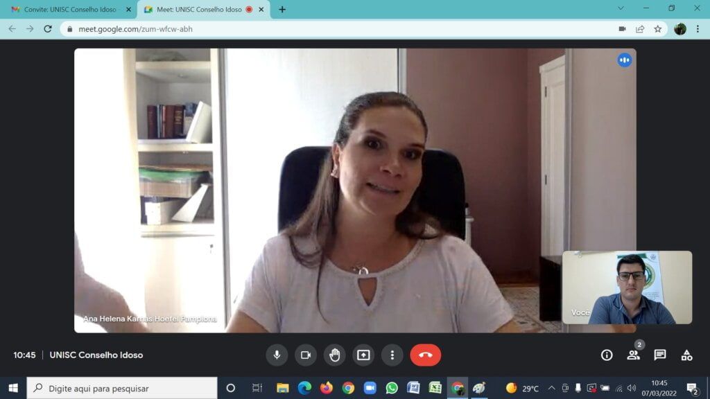 O Conselho Municipal do Idoso (Comid), através do presidente Lucas Gomes, promoveu uma reunião com a professora da Universidade de Santa Cruz (Unisc), Ana Helena Hoefel Pamplona. O foco foi tratar sobre os desafios das políticas públicas para idosos no município. O encontro ocorreu de forma virtual na última segunda-feira (7).