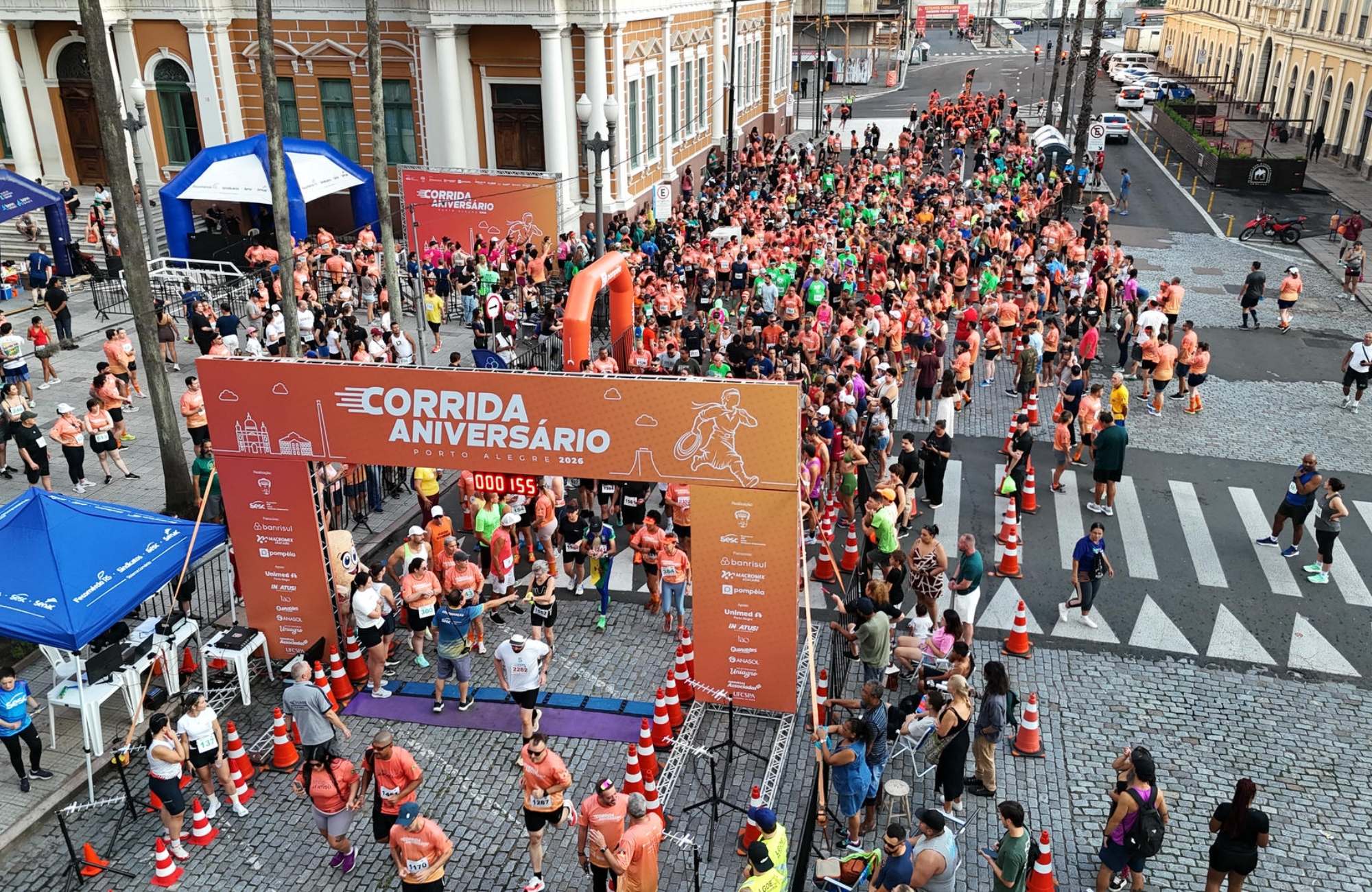 A Corrida de Aniversário de Porto Alegre reuniu mais de 1,7 mil atletas na manhã deste domingo (29), no Centro Histórico da capital, como parte das comemorações dos 254 anos do município. Com largadas a partir das 7h, em frente ao Paço Municipal, o evento contou com percursos de 3,5 km, 7 km e 15 km, além de uma caminhada de 3,5 km. A iniciativa foi realizada pelo Sesc Azenha, com apoio de patrocinadores e parceria da Prefeitura, com o objetivo de incentivar a prática esportiva e promover integração entre os participantes.