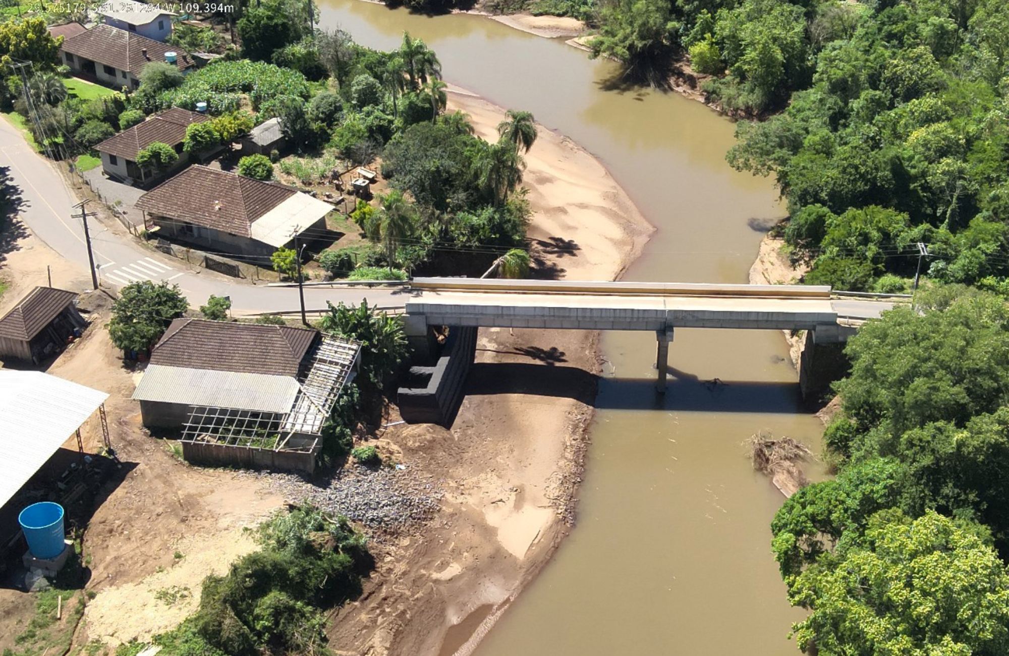 Os técnicos também vistoriaram a construção de gabiões na ponte que liga São José do Hortêncio a Lindolfo Collor, considerada essencial para a mobilidade entre os municípios. Outro local inspecionado foram as obras de enrocamento em andamento na estrada Capela da Exaltação, que têm a finalidade de reforçar margens e prevenir danos em períodos de chuvas intensas.