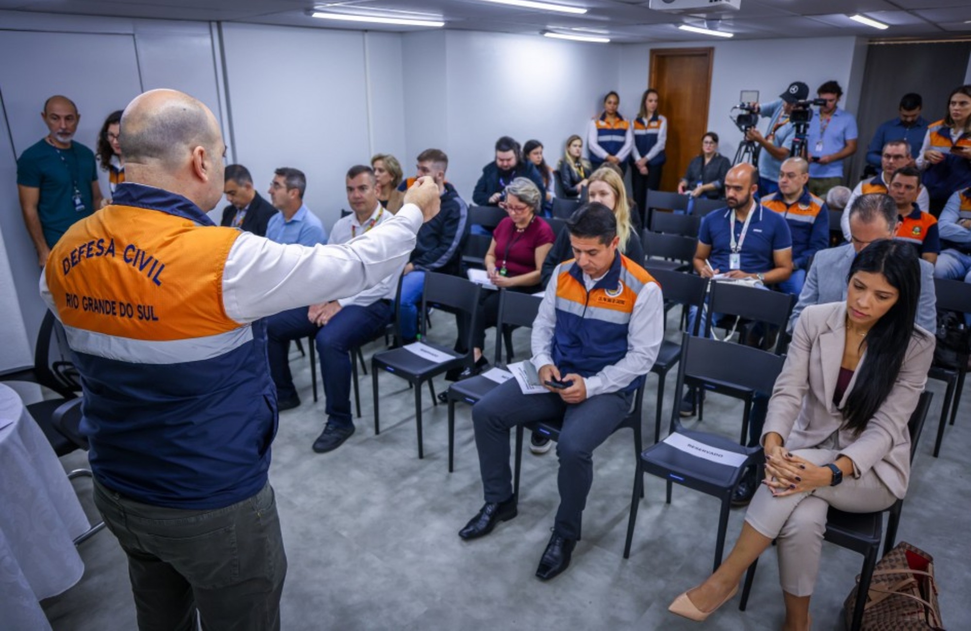 A Defesa Civil do Estado do Rio Grande do Sul iniciou nesta terça-feira (6) a utilização de um novo formato de comunicação de alertas à população. O sistema adota uma escala de cores para indicar o grau de severidade de eventos climáticos e inclui orientações claras sobre o comportamento esperado da população em cada situação. A medida foi apresentada durante uma coletiva de imprensa realizada pela manhã, como parte das ações alusivas ao primeiro ano das enchentes de 2024. A nova abordagem integra o Plano Rio Grande, programa do governo estadual voltado à reconstrução do estado e à preparação para eventos extremos futuros.