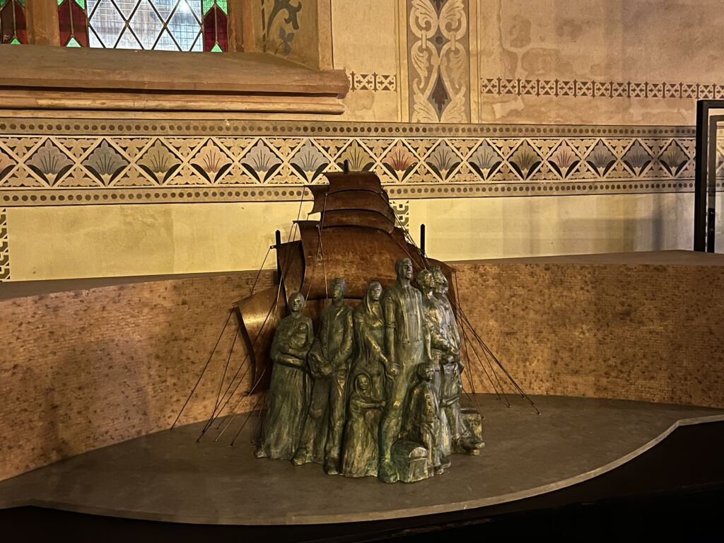 Natural de Novo Hamburgo e profundamente ligado à história e cultura germânica da região, Schmitz idealizou a peça como uma alegoria da chegada dos primeiros colonos alemães ao Brasil. Com cerca de 4 metros de altura e 1 metro de largura, a maquete utiliza símbolos como velas de navio e figuras humanas para representar a jornada dos imigrantes e a construção de um novo lar. “O estudo é uma representação da travessia e da determinação dos colonos em erguer um novo mundo. A forma da peça remete a uma proa de navio, simbolizando o espírito de aventura e construção de uma nova vida”, explica o artista.
