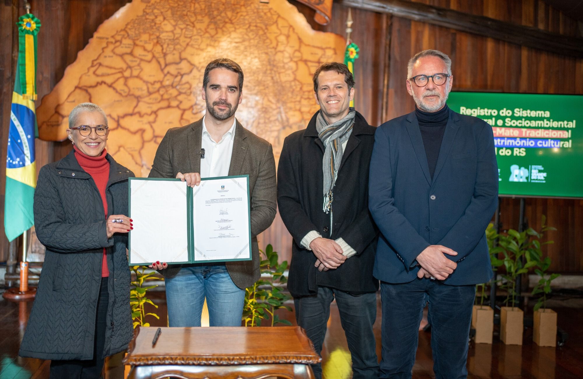 A solenidade contou com a presença do governador Eduardo Leite, da secretária da Cultura, Beatriz Araujo, do diretor do Departamento de Memória e Patrimônio da Secretaria da Cultura (Sedac), Eduardo Hahn, e do diretor do Iphae, Renato Savoldi. Também participaram representantes da etnia Mbya Guarani, de comunidades quilombolas e da agricultura familiar, grupos que fazem parte das referências culturais e produtivas relacionadas à erva-mate.