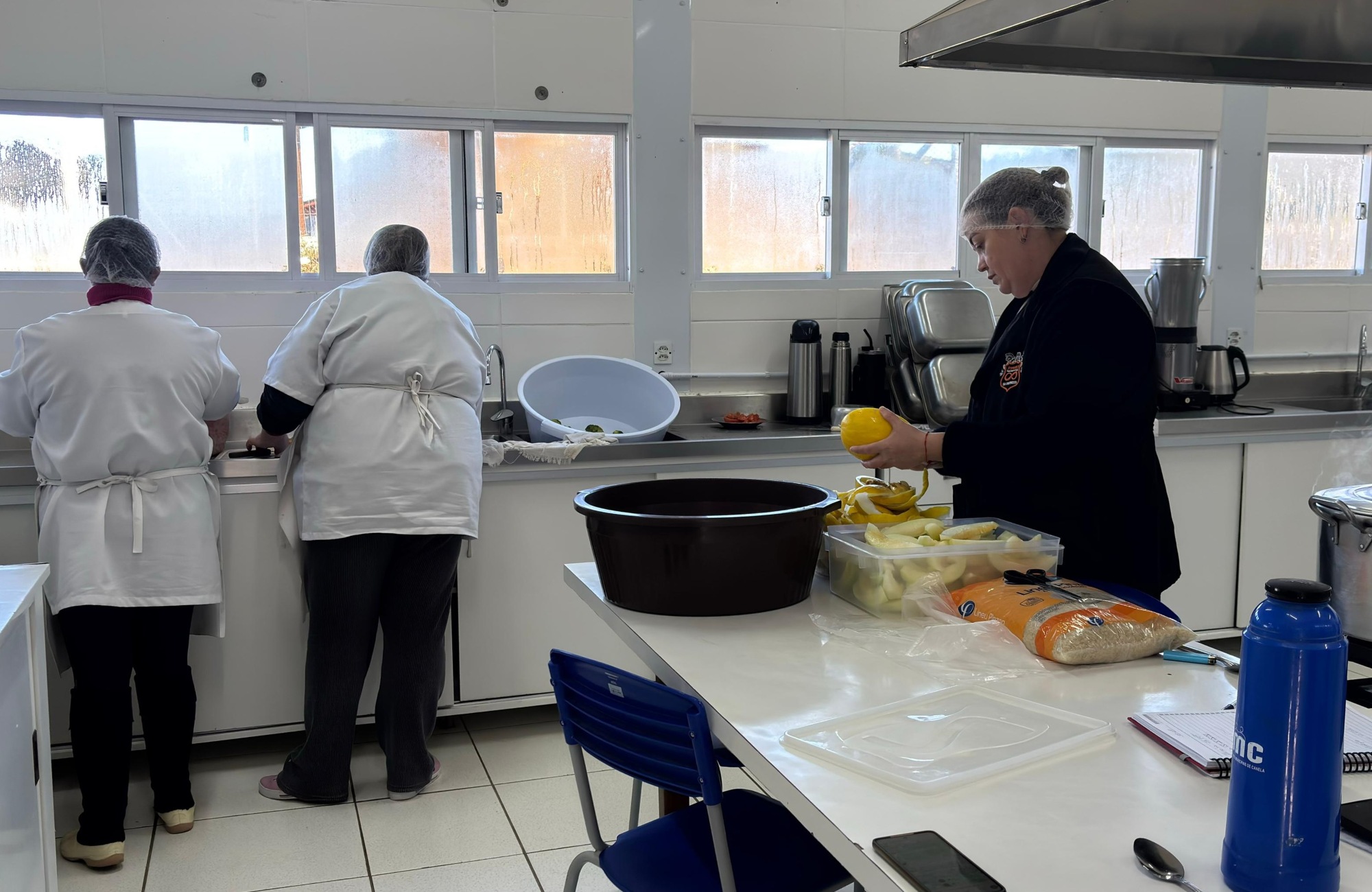 O cardápio inclui pratos como bolos, iogurte, leite com cereais, biscoitos, arroz, feijão, saladas, carne de frango, carne bovina, ovos e guarnições variadas. Na cozinha da Escola Dante, quatro cozinheiras atuam na preparação dos alimentos. A auxiliar de serviços gerais Maria Catarina Catuci, há 21 anos trabalhando com alimentação escolar, destaca a satisfação pelo trabalho, ressaltando “ser gratificante ver o trabalho fazer a diferença na vida dos estudantes”.