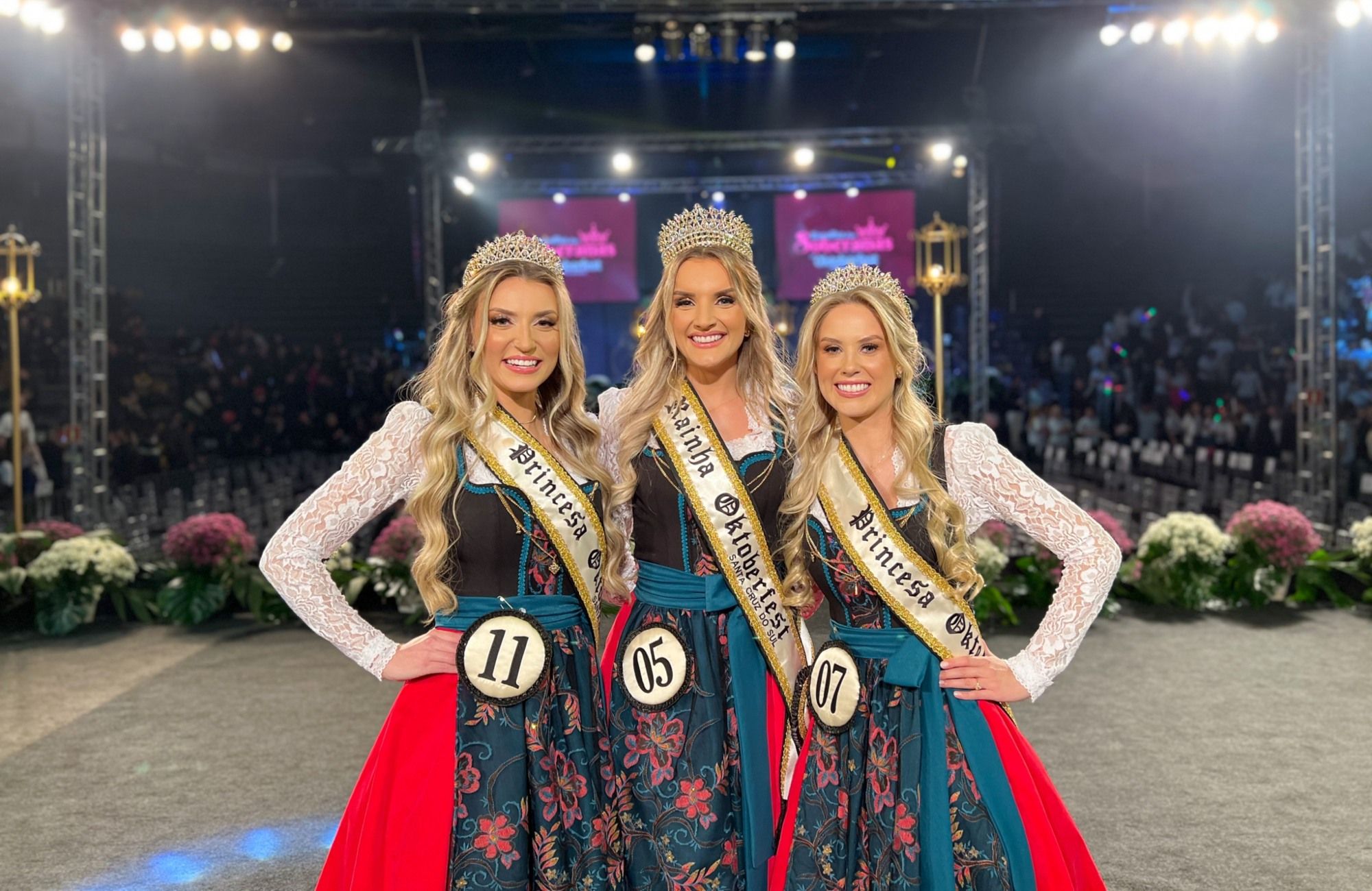 A comunidade santa-cruzense conheceu, na noite do último domingo, (28), o novo trio de soberanas da Oktoberfest. Camila Eduarda Schaefer foi coroada rainha da 38ª Oktoberfest, ao lado das princesas, Marilia Fischer e Daniela Schoeninger. A escolha reuniu cerca de quatro mil pessoas no Ginásio Poliesportivo do Parque da Oktoberfest.