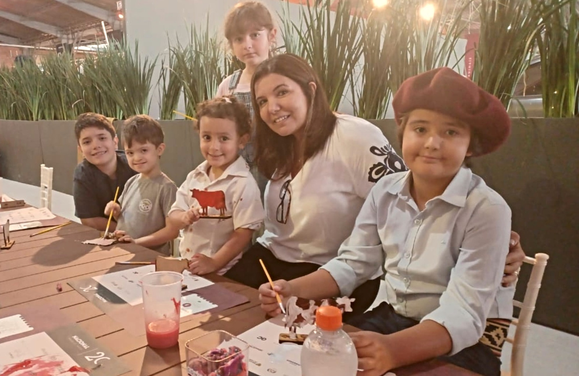 No dia seguinte, a Cabanha Marca Naipe promoveu pintura de “vaquinhas” e um julgamento simbólico de animais, reproduzindo de forma educativa o funcionamento das pistas oficiais de avaliação da feira.