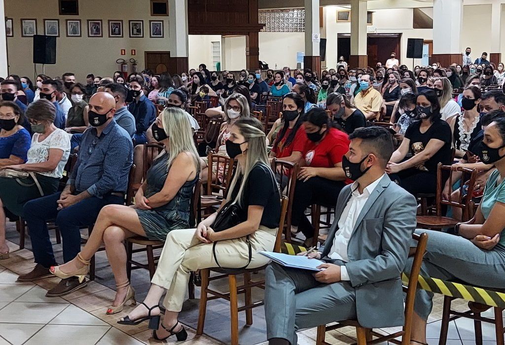 A prefeitura de Estância Velha reuniu os professores das escolas de educação infantil e fundamental do município para comemorar o Dia do Professor e anunciar as novidades da 40ª Feira do Livro da cidade e também de um pacote de educação com diversas ações para a melhoria das escolas (que terá o investimento de mais de R$ 5 milhões).