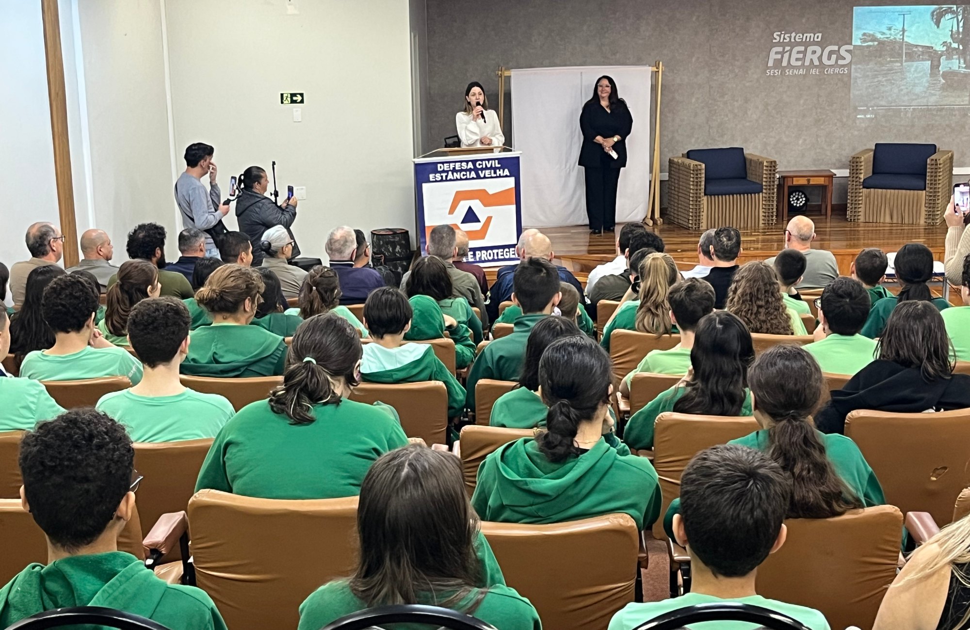 O projeto “Defesa Civil na Escola: Educação Resiliente” foi lançado pela Prefeitura de Estância Velha nesta terça-feira (30), no auditório do Senai. A iniciativa, que tem como objetivo aproximar a comunidade escolar dos temas de prevenção, resposta e conscientização sobre desastres naturais e emergências, é conduzida pela Defesa Civil do município em parceria com a Secretaria de Educação e Cultura.