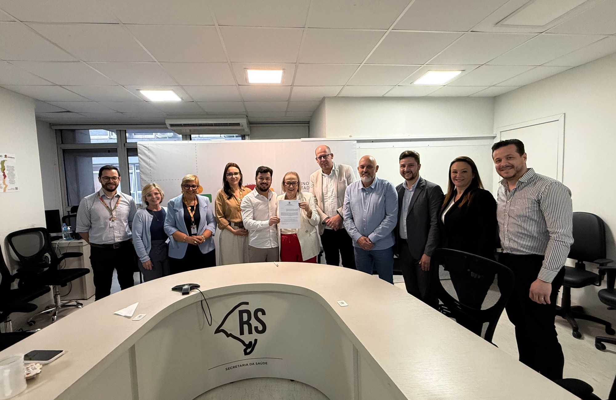 A Prefeitura de Estância Velha firmou, na manhã de quinta-feira (8), um aditivo contratual com o Governo do Estado do Rio Grande do Sul para ampliar o repasse de recursos ao Hospital Municipal Getúlio Vargas (HMGV), em Porto Alegre, na sede da Secretaria Estadual de Saúde. O novo contrato garante um incremento mensal destinado ao custeio dos serviços cirúrgicos por meio do Programa Federal Mais Acesso a Especialistas (PMAE), com teto de produção fixado em R$ 360 mil.