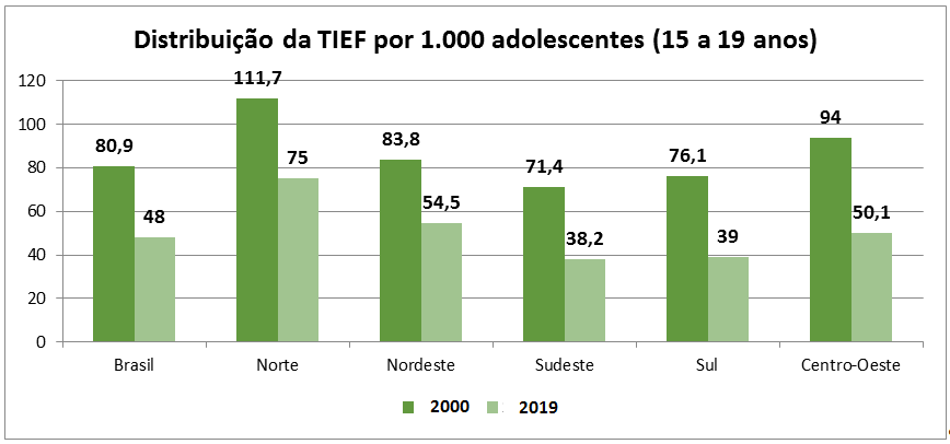 Segundo o Instituto Brasileiro de Geografia e Estatísticas (IBGE), as regiões Sudeste e Sul apresentam os maiores IDH do país (0,80), seguidas do Centro-Oeste (0,79), Norte (0,73) e Nordeste (0,71). De acordo com o DataSUS/Sinasc, a cada dia ocorram cerca de 1150 nascimentos de filhos de adolescentes.