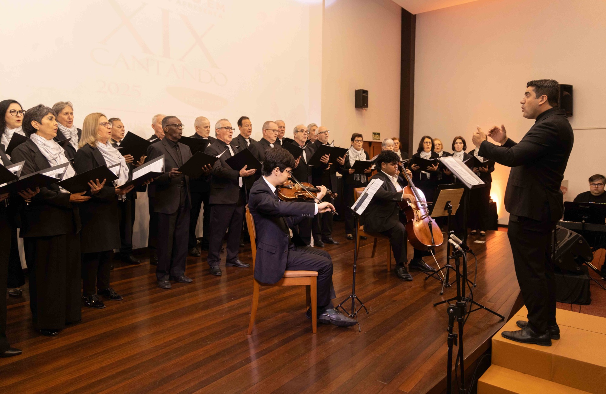 Entre os momentos especiais, se destacou a apresentação conjunta dos coros Vozes da Apit e Canto das Águas, que interpretaram Vá Pensiero, de Giuseppe Verdi, em homenagem aos 150 anos da imigração italiana no Brasil. Outro tributo foi dedicado a Vlademir Wagner da Silva, integrante do Vocal Herval por mais de 18 anos, que recebeu uma homenagem póstuma. Seus familiares receberam uma lembrança especial, enquanto o grande coro formado por todos os grupos encerrou a homenagem com a canção Origens, de Antônio Fagundes.
