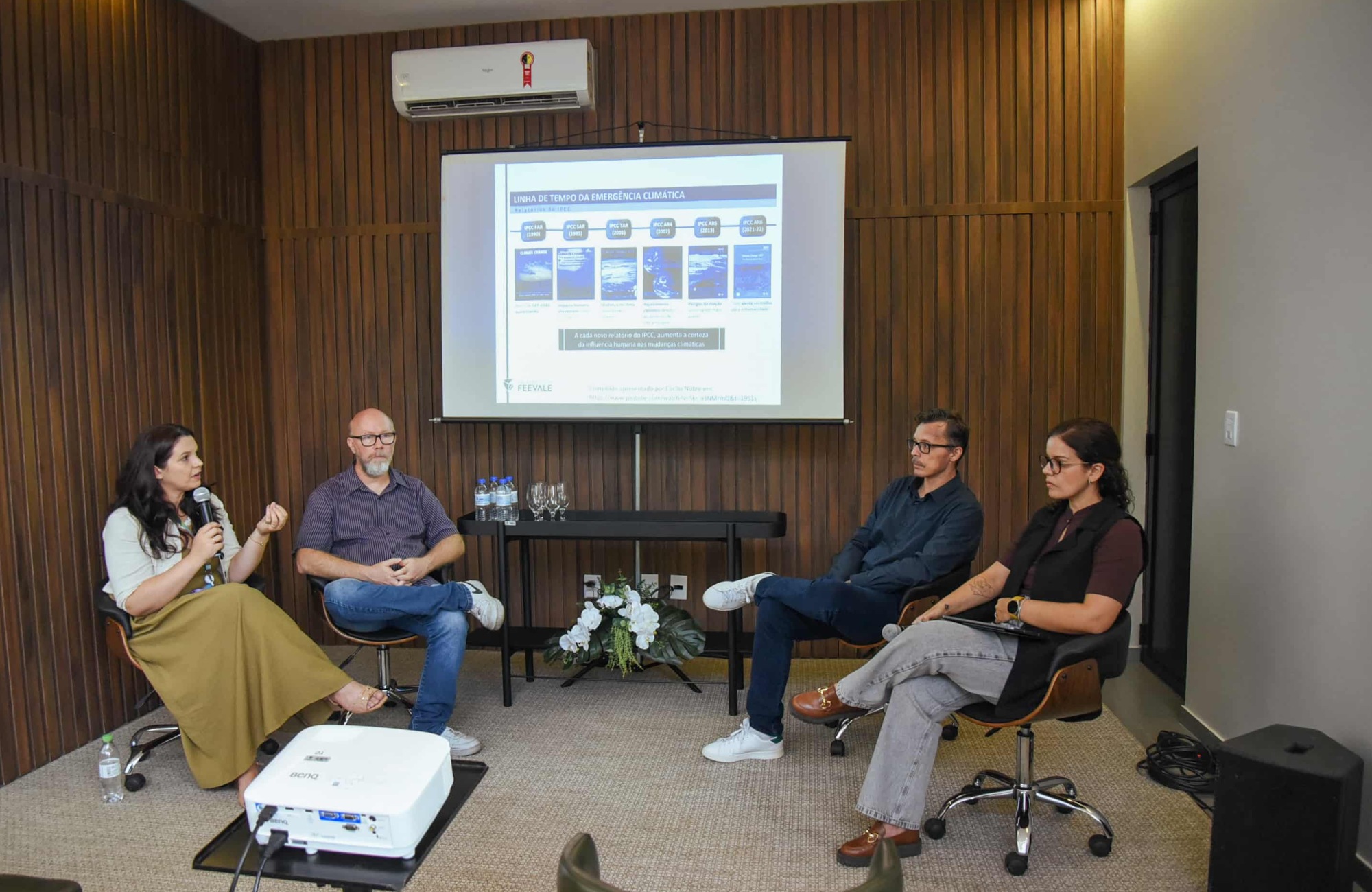 O impacto das mudanças climáticas no campo e nas cidades esteve no centro de um bate-papo que reuniu especialistas de diferentes áreas para discutir caminhos e soluções para o futuro da produção agrícola. O encontro ocorreu na tarde da quinta-feira, 19, no Hub Agro, espaço que é uma parceria entre a Prefeitura de Esteio e a Universidade Feevale e está localizado no Parque Estadual de Exposições Assis Brasil.
