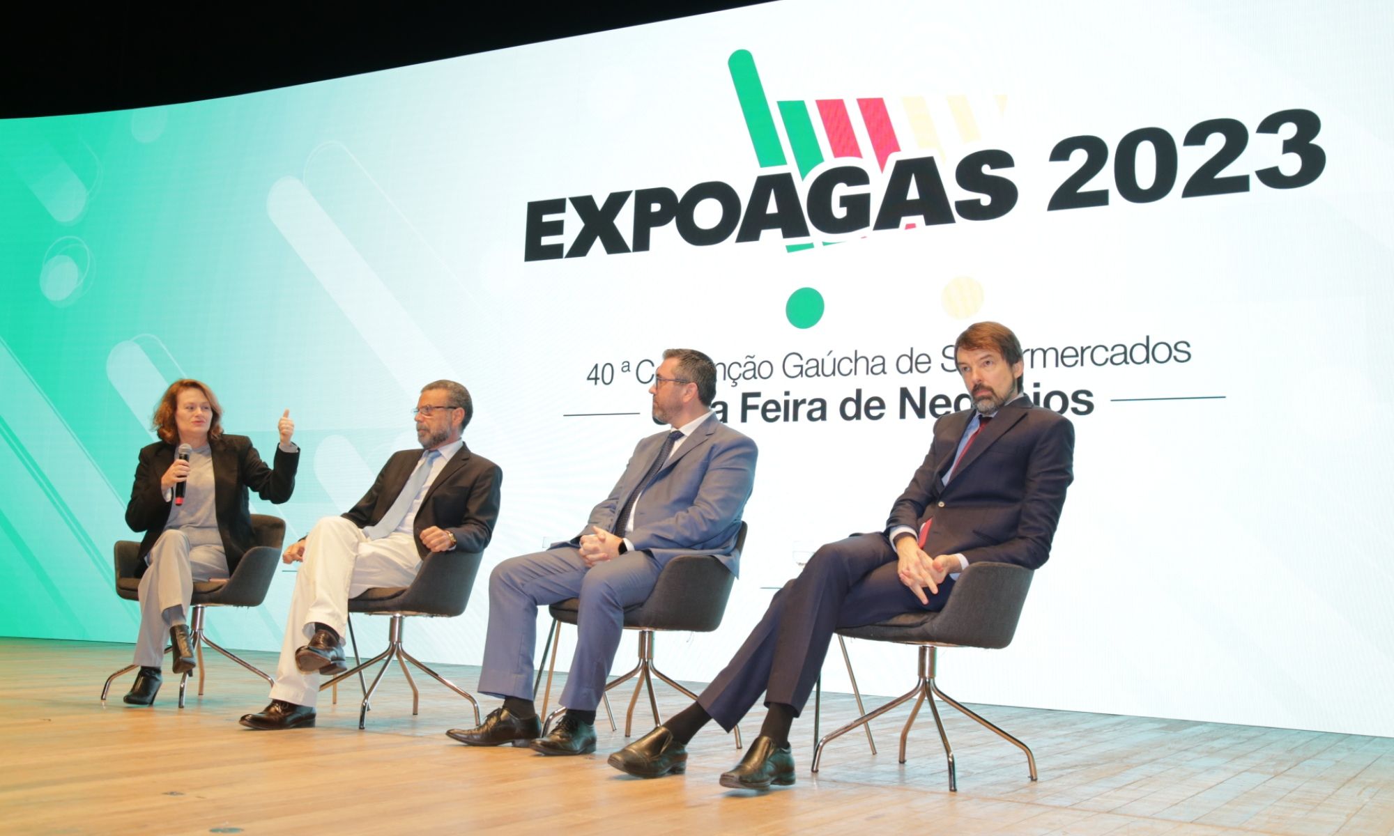 Especialistas nas áreas de economia e política falaram sobre Modernização e Reformas: o desafio brasileiro em painel realizado na quarta-feira (23), no Teatro do Sesi, no segundo dia da Expoagas 2023 – 40ª Convenção Gaúcha de Supermercados. O encontro teve a participação do filósofo, cientista político e professor do Instituto de Ensino Superior em Negócios (Insper), Fernando Schüler, do economista Marcelo Portugal, e do economista-chefe do Sistema Farsul, Antônio da Luz, com a mediação da jornalista e colunista de economia do jornal Zero Hora, Marta Sfredo.