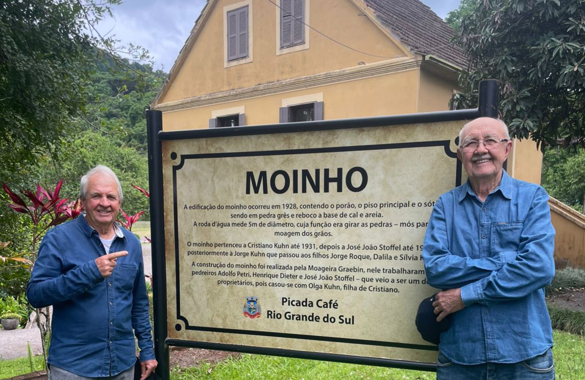 O Parque Histórico Municipal Jorge Kuhn, em Picada Café, recebeu a visita dos irmãos Guinter e Marcos Stoffel na tarde da sexta-feira (31), acompanhados do sobrinho Alison Stoffel, para um encontro voltado à preservação da memória local. A família, que administrou por anos o antigo moinho que integra o conjunto histórico do parque, compartilhou lembranças e registros sobre a trajetória do espaço, ampliando o acervo histórico do município.