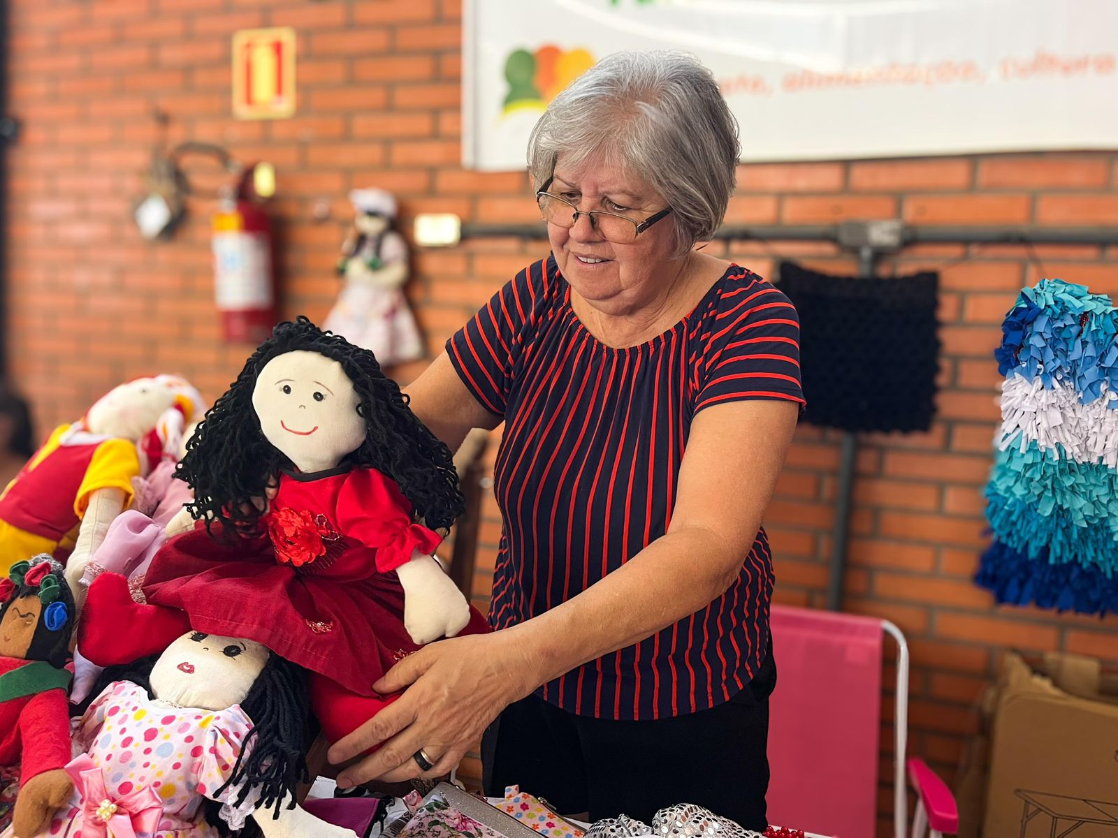 Essa é a primeira feira em 2025, mas o evento já ocorre há três anos no espaço, duas semanas por mês, de fevereiro a dezembro. A próxima edição será entre os dias 24 e 28 deste mês. Cerca de 30 artesãos se dividem durante os dois períodos mensais para exibir suas confecções. São pessoas de diversas partes da cidade, como: Feitoria, Campestre, São Borja e Arroio da Manteiga. Sueli Angelita da Silva, 57, Presidente da Associação dos Artesãos da Feitoria, é uma das expositoras. Há 30 anos ela trabalha com artesanato e vê o evento como uma forma de divulgar o seu trabalho. “Aqui eu consigo acessar novos clientes, já que muitas pessoas circulam pelo trem, inclusive vindo de outras cidades. Estarmos aqui, em um local central, impulsiona nossas vendas”, comenta. Nessa semana ela está dividindo o espaço com outras duas profissionais. Uma delas é Marta Regina Corrêa, 66, coordenadora do projeto Mãos e Sonhos, que ocorre na Paróquia São João Batista, no Arroio da Manteiga. Por meio desse trabalho, ela ensina os primeiros passos da costura a mulheres da comunidade. “A feira ajuda a divulgar os materiais que produzimos e também contribui para nossa independência financeira”, relata.
