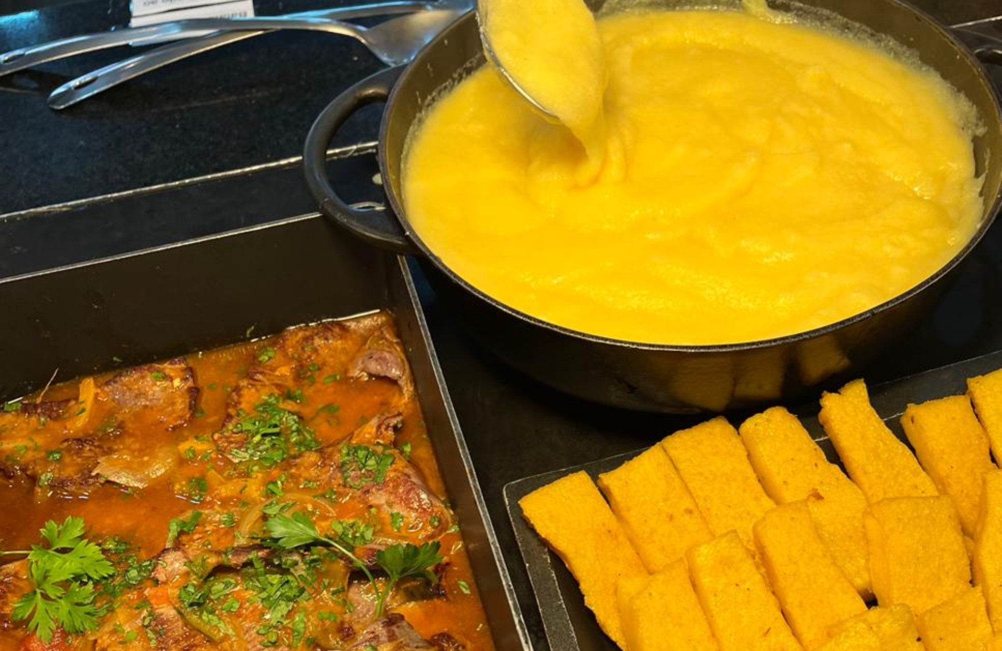 - Cardápio: Polenta em diferentes versões, carnes assadas, saladas, sobremesa e café