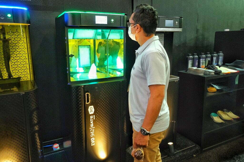 Da mesma forma, a Sazi Máquinas avaliou de forma positiva a retomada da feira e do setor. “Em geral os clientes estão com bastante produção e demanda, por isso acreditamos em uma retomada forte do setor. As metas são bem audaciosas, não só para a feira como para o ano”, projetou Fernando Dienstmann, coordenador comercial da empresa. Para a marca, o primeiro dia de feira reuniu um público qualificado. “O estande está cheio desde o início da feira. Estamos atendendo vários clientes, alguns que já conhecemos e outros novos”, relatou Dienstmann, afirmando que a marca apresenta máquinas que são novos conceitos para a indústria do calçado.