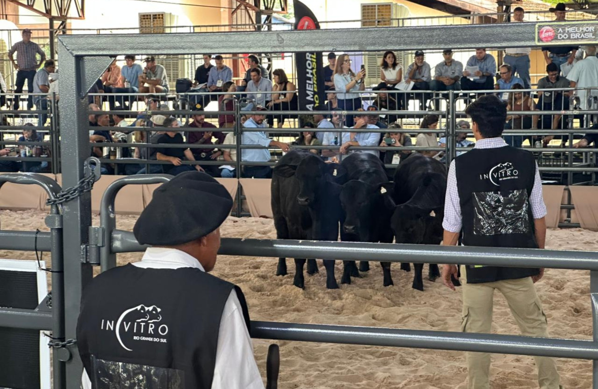 Criatórios gaúchos arremataram alguns dos principais prêmios nos julgamento de rústicos na quinta-feira (19) no Mundial Brangus 2026, em Londrina (PR). Estreante nas pistas da raça em formato solo, a Fazenda VR, de Lajeado (RS), levou o Trio Grande Campeão Top Terneira com as fêmeas do box 03 (tatuagens FIVB560, FIVB568 e FIVB576). Eufórico na beira da pista, o empresário do setor logístico e pecuarista Everaldo Reginatto conta que esta é a primeira vez que a propriedade entra em disputa com um animal 100% seu. “A cabanha tem apenas dez anos. Vencer aqui no Mundial é prova de que o trabalho que estamos fazendo é feito com um olho bom”, pontuou o criador que já esperava nível altíssimo nas pistas do Mundial. “Ficamos muito felizes de termos alcançado o objetivo de estar entre os primeiros. É resultado do trabalho de toda uma equipe”, disse, assegurando que a vitória é “50% genética e 50% preparo”.