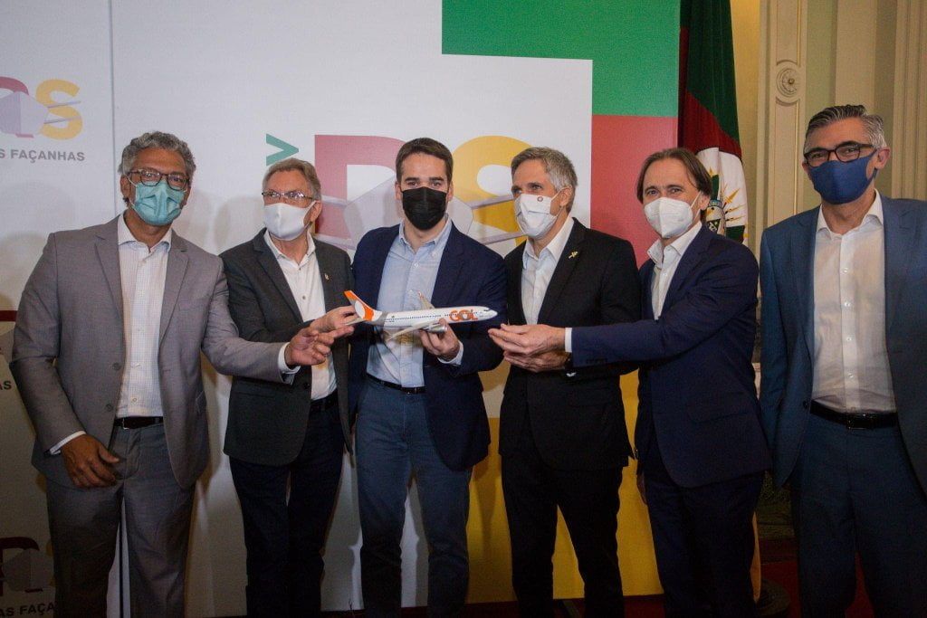 O CEO e presidente da GOL Linhas Aéreas, Paulo Kakinoff, reuniu-se com autoridades gaúchas na manhã de quarta-feira (17), no salão Negrinho do Pastoreio do Palácio Piratini, sede do governo do Rio Grande do Sul, em Porto Alegre, para o anúncio das operações em novos destinos regionais da empresa no Estado. Pelotas, Uruguaiana, Santo Ângelo e Santa Maria são as quatro cidades que, em 2022, passam a contar com as operações da GOL em voos diretos para o aeroporto internacional de São Paulo/Guarulhos (GRU). No total, a GOL terá voos diretos para 7 destinos no Rio Grande do Sul, incluindo Porto Alegre, Caxias do Sul e Passo Fundo.