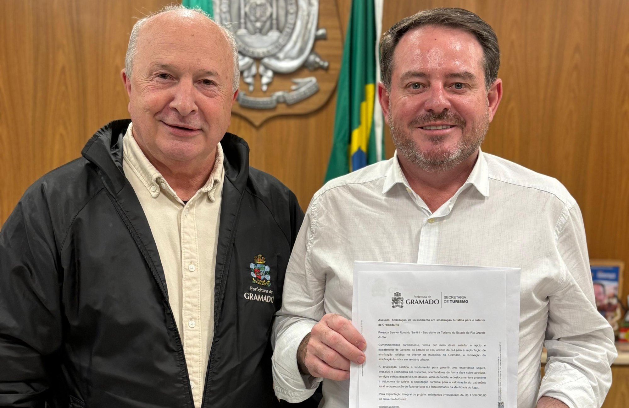 O vice-prefeito de Gramado, Luia Barbacovi, esteve nesta terça-feira (17) no Centro Administrativo do Governo do Estado, em Porto Alegre, para tratar de demandas do município. Na ocasião, Barbacovi se reuniu com o secretário estadual de Turismo, Ronaldo Santini, e protocolou um pedido de recursos para investimentos em sinalização turística, tanto nas vias urbanas quanto nas estradas do interior.