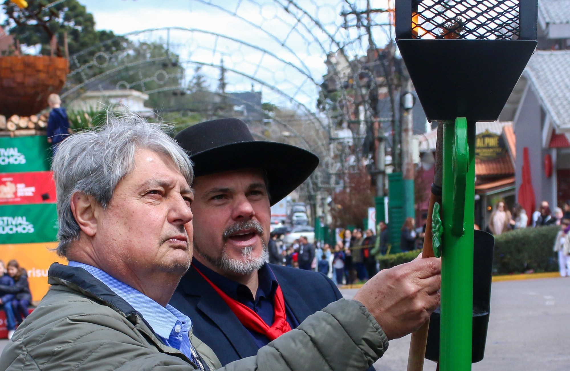 As comemorações da Semana Farroupilha em Gramado começaram no sábado (6) e seguem até 26 de setembro, com uma série de eventos culturais destinados a moradores e visitantes. A abertura contou com o prefeito Nestor Tissot (PP) e o patrão do CTG Manotaço, Fernando Gusen, que retiraram uma centelha do Fogo da Pátria, mantendo a Chama Crioula acesa até 20 de setembro. As atividades ocorrem em diversos pontos da cidade, como o Piquete no Lago Joaquina Rita Bier, o CTG Manotaço e a Rua Coberta, promovendo oficinas, apresentações e celebrações da cultura gaúcha.