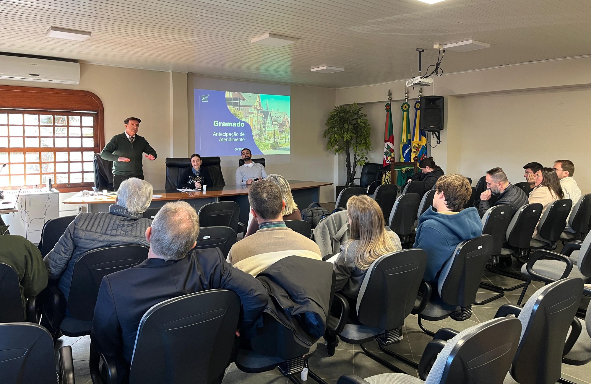 A Prefeitura de Gramado realizou uma reunião com o Ministério Público, a concessionária Corsan/Aegea e empreendedores das regiões Várzea Grande, Mato Queimado, Dutra/Moura e Oeste (Carazal) na sexta-feira (27) para tratar da ampliação do Sistema de Esgotamento Sanitário no município. O encontro ocorreu com o objetivo de esclarecer dúvidas sobre o Termo de Adesão, instrumento que propõe uma parceria entre o setor privado e a concessionária para antecipar investimentos em infraestrutura de saneamento.