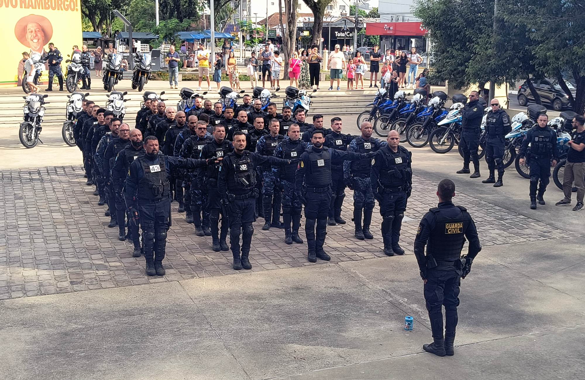 O Grupamento Especializado em Segurança com Motos (Gescom) da Guarda Municipal de Novo Hamburgo (GMNH) formou, neste sábado (22), 44 agentes de nove cidades do Rio Grande do Sul. A cerimônia de conclusão do curso ocorreu na Praça do Imigrante, no centro hamburguense, e contou com a presença de familiares, autoridades e a comunidade local.