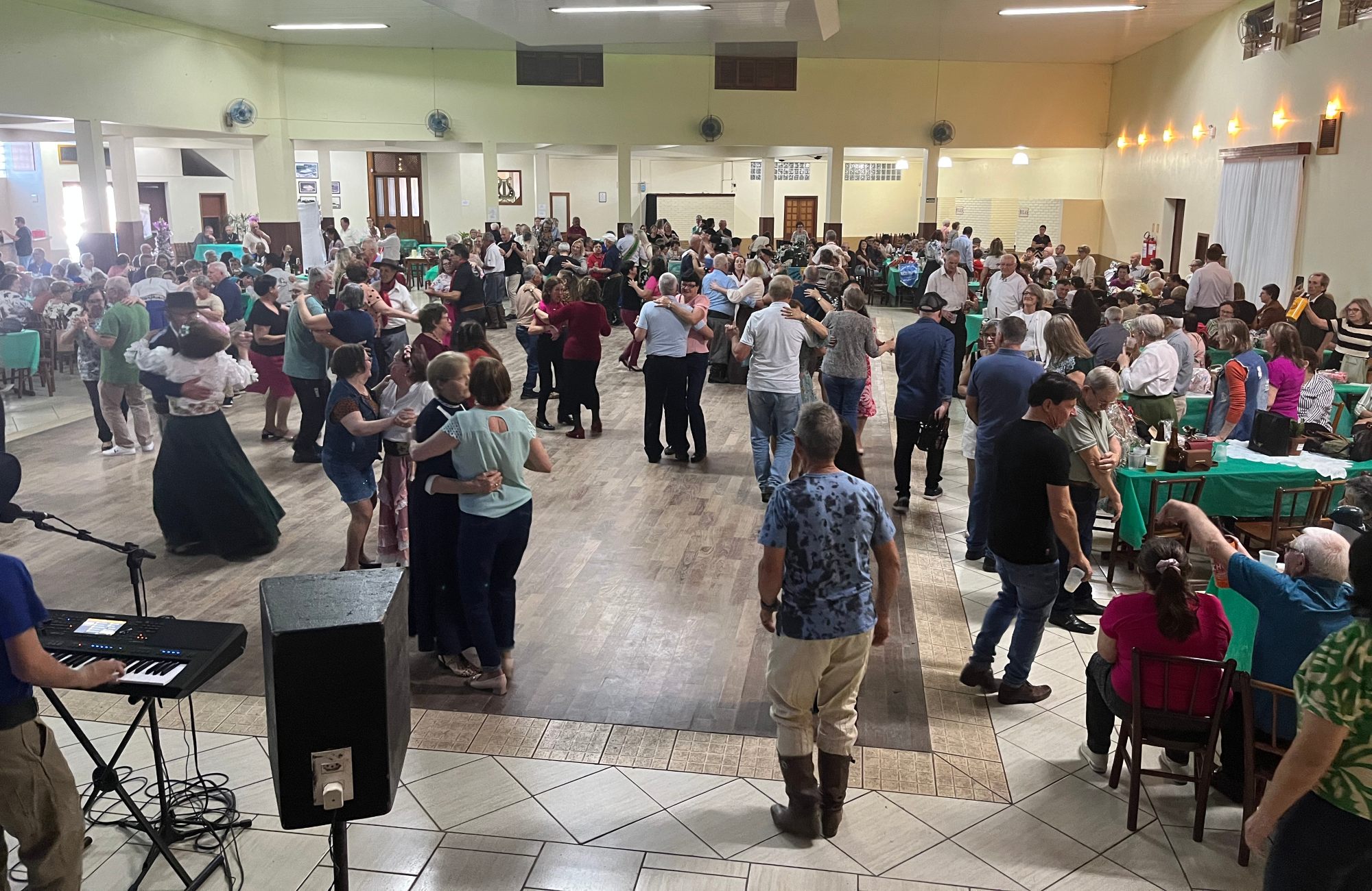 O Grupo Conviver promoveu um baile em comemoração aos 66 anos de Estância Velha durante a tarde desta quarta-feira (17). O evento foi realizado na Sociedade de Canto Lyra e reuniu mais de 350 pessoas, entre integrantes do grupo estanciense da terceira idade e convidados de Novo Hamburgo, Ivoti, Santa Maria do Herval e de outros conjuntos locais. A celebração contou com música ao vivo do Vitrine Musical, que animou o público com bandinha e bailão até o final da tarde.