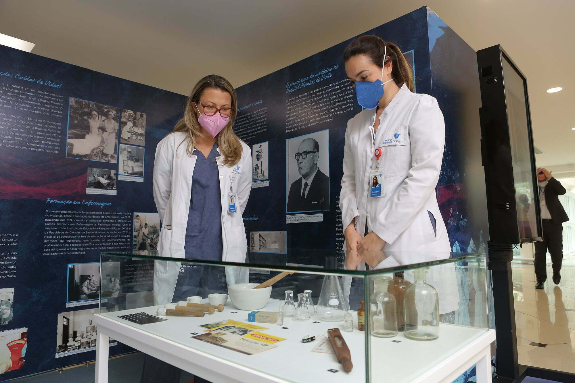 Inaugurada na manhã desta segunda-feira, 4 de outubro, a exposição é uma viagem no tempo e faz uma homenagem à história de todos os profissionais que atuam no hospital. O resgate da evolução do quadro de funcionários começa com as primeiras equipes, que eram coordenadas pelas Schwestern, e revela como cada atividade era desenvolvida pelas irmãs diaconisas. Com o crescimento da instituição, foram surgindo novas profissões e novos postos de trabalho. Um acervo relacionado ao atendimento de pacientes e a trajetória dos colaboradores, junto com a exibição de um vídeo com informações complementares, está à mostra no bloco C, próximo ao Convívio Médico.