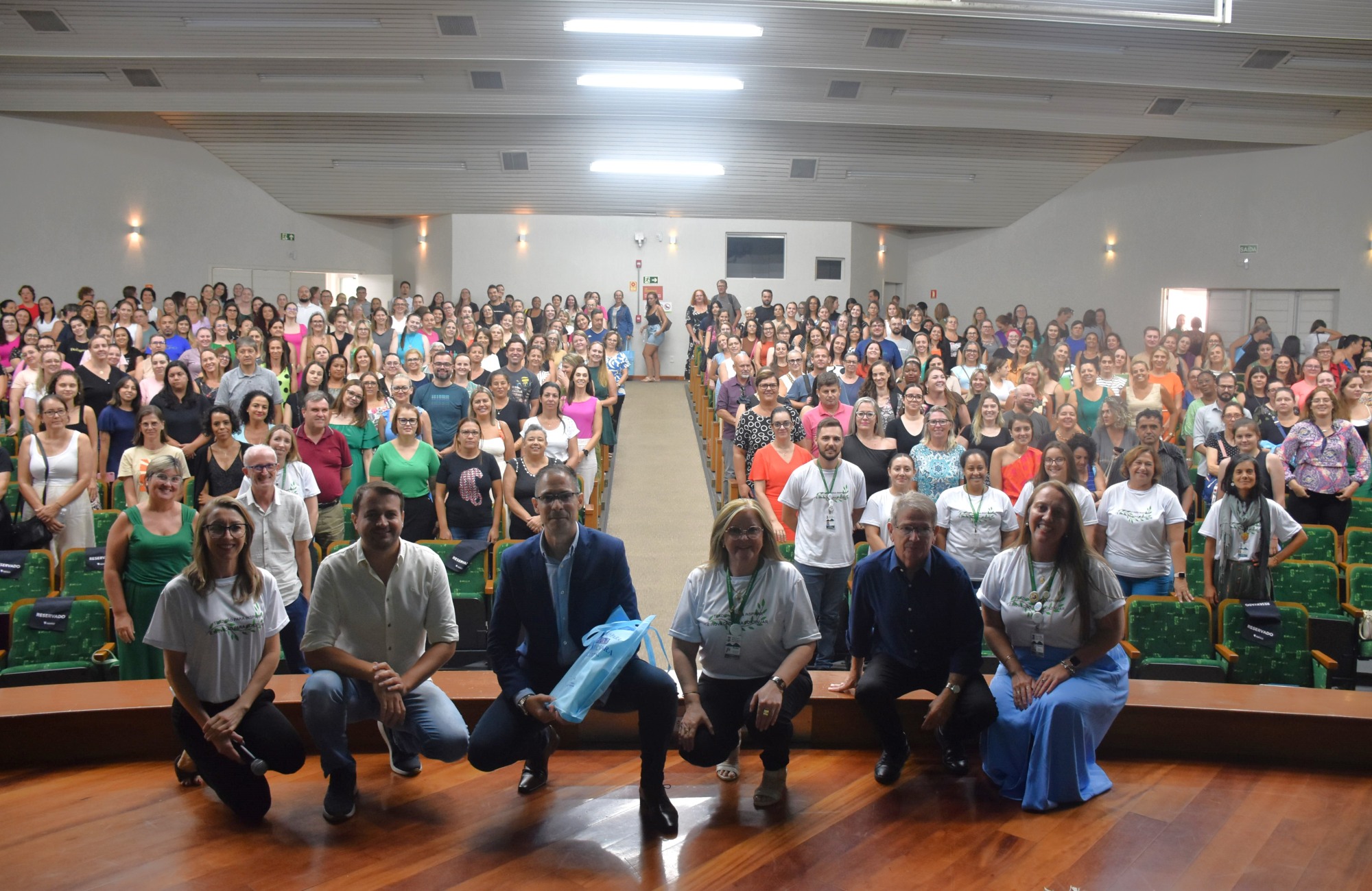 O Salão de Atos da Universidade Feevale foi o espaço perfeito para acolher todos os servidores da rede municipal de educação. Professores, monitores, secretários de escola, serventes, estagiários, motoristas, diretores, vice-diretores, técnicos de apoio pedagógico e servidores da Secretaria de Educação acompanharam atentamente o painel “Contribuições Neurocientíficas para os Processos de Aprendizagem e Educação”.
