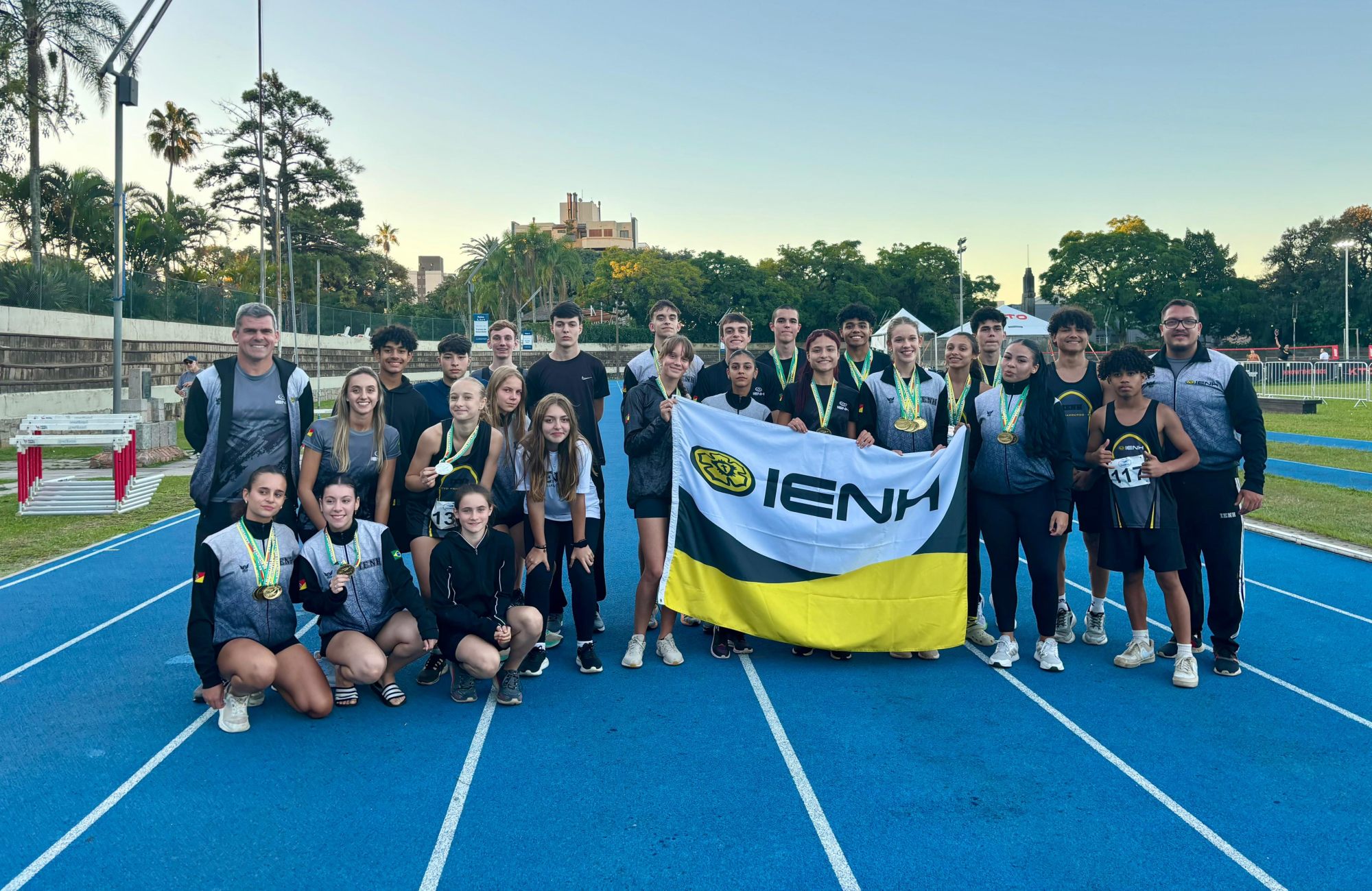 A equipe de atletismo da Instituição Evangélica de Novo Hamburgo (IENH) venceu o Campeonato Estadual Sub-18 neste sábado (10), na pista atlética da Sogipa, em Porto Alegre. A competição reuniu escolas e instituições de destaque do atletismo no Rio Grande do Sul. A IENH garantiu o primeiro lugar nas categorias masculina, feminina e na classificação geral, com um total de 25 medalhas — sendo 12 de ouro, 4 de prata e 9 de bronze.