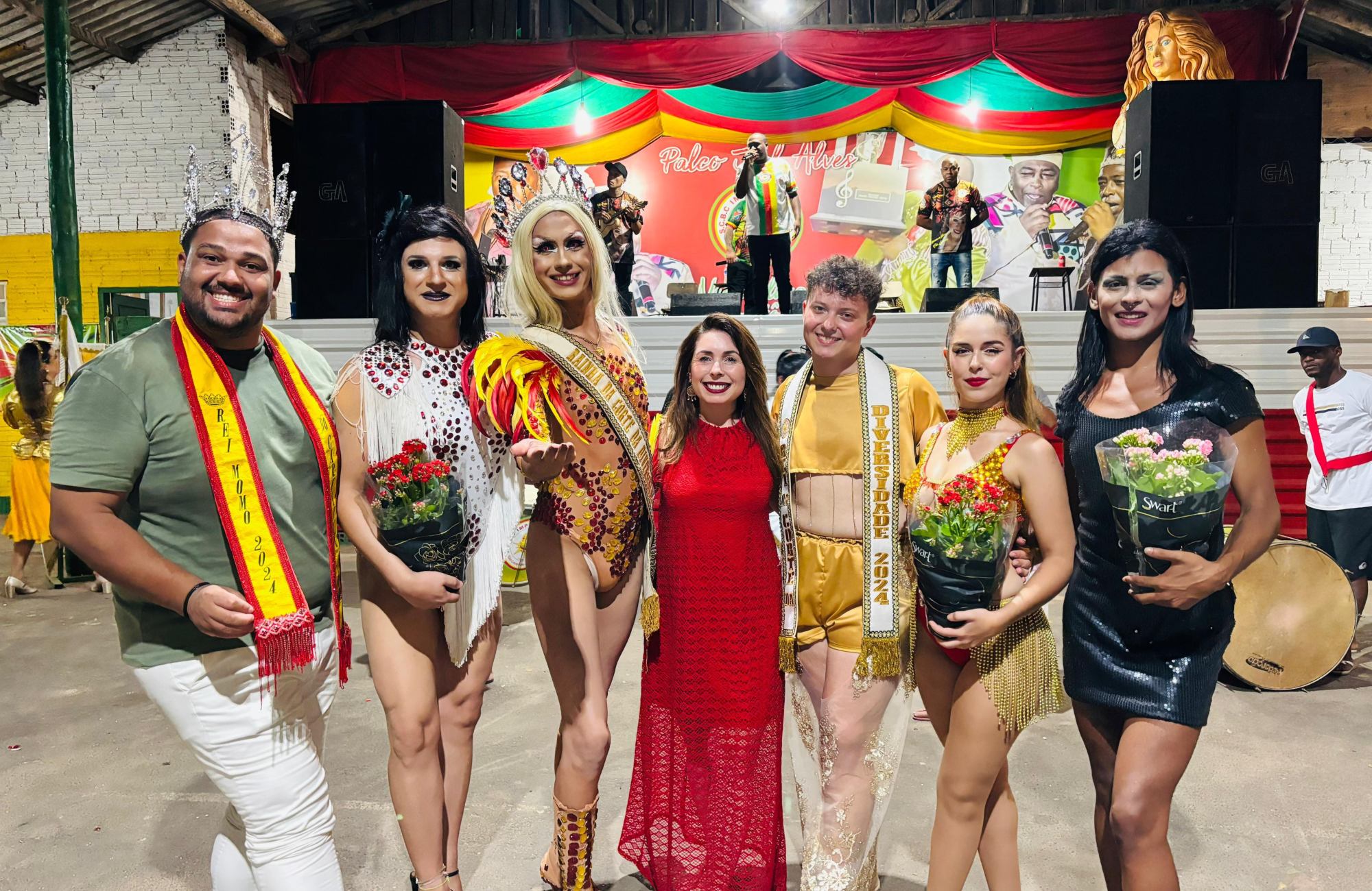 A escola de samba Império do Sol escolheu, neste sábado (8), sua corte da diversidade para o Carnaval 2025 em São Leopoldo. O evento ocorreu na sede da entidade e teve a participação da secretária de Cultura e Relações Internacionais, Lionella Goulart, que representou a Prefeitura de São Leopoldo e integrou o corpo de jurados pela primeira vez. A corte será formada pela rainha Aurora Rosa, a 1ª princesa Kaity Aible, a 2ª princesa Laura Fontana e a Embaixatriz da Corte, Gaby Quadras. Elas foram apresentadas ao público, dando início às celebrações carnavalescas da escola.
