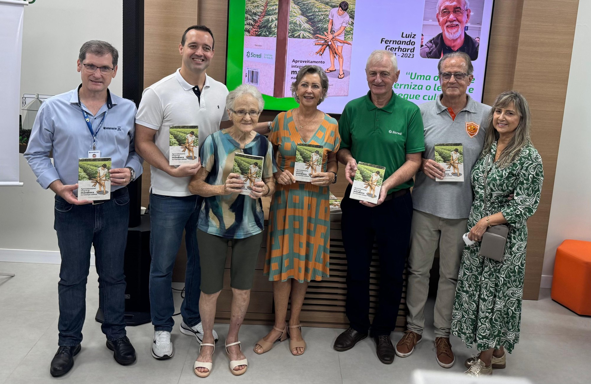 Um livro sobre o aproveitamento integral da mandioca na nutrição animal foi lançado na manhã desta sexta-feira (27), na Casa Sicredi, durante a Expoagro Afubra, em Rio Pardo. A obra, intitulada “Aproveitamento integral da mandioca na nutrição animal”, reúne estudos do engenheiro agrônomo Luiz Fernando Gerhard e foi publicada de forma póstuma, com patrocínio do Sicredi Vale do Rio Pardo. O lançamento contou com a presença de familiares, parceiros e apoiadores, com a entrega do primeiro exemplar à viúva do autor, Rosemary Breidenbach Gerhard, realizada pelo presidente da instituição financeira, Heitor Álvaro Petry.