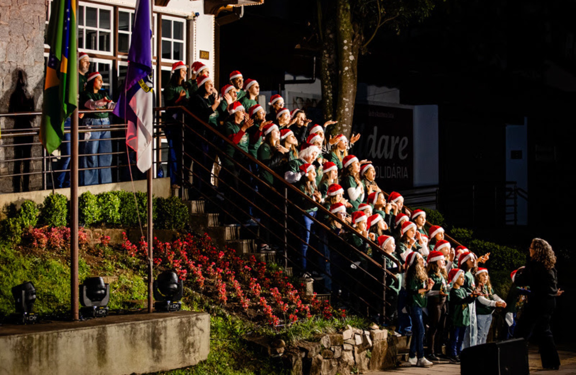 A programação da Magia do Natal de Nova Petrópolis segue neste fim de semana, com destaque para a tradicional Cantata na Janela, que ocorre neste sábado, dia 13, às 20h30min, no prédio da prefeitura. O evento, que começou em 7 de novembro e segue até 4 de janeiro de 2026, oferece atrações gratuitas na Rua Coberta e na Praça das Flores aos finais de semana, incluindo espetáculos musicais, teatrais, de dança e a presença do Papai Noel.