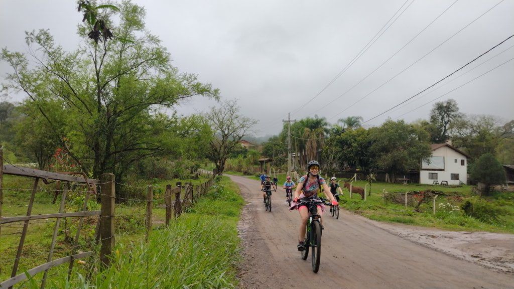 Depois de sair da área central, o grupo seguiu até o bairro Floresta, retornou ao Centro e subiu o bairro Das Rosas. Quando retornou, o comboio ingressou na Av. 1º de Maio, e chegou ao bairro Campo Grande costeando o Arroio Estância Velha. No Campo Grande, o grupo seguiu pela rua Parobé pela zona rural da cidade, onde encontrou lindas paisagens. Antes de chegar ao ponto de hidratação, no CTG Estância do Campo Grande, o grupo se dividiu. Os mais experientes seguiram com um pedal mais pesado, rumo ao Morro Agudo, e os ciclistas de “primeira viagem” foram orientados a pegar o caminho menos denso.
