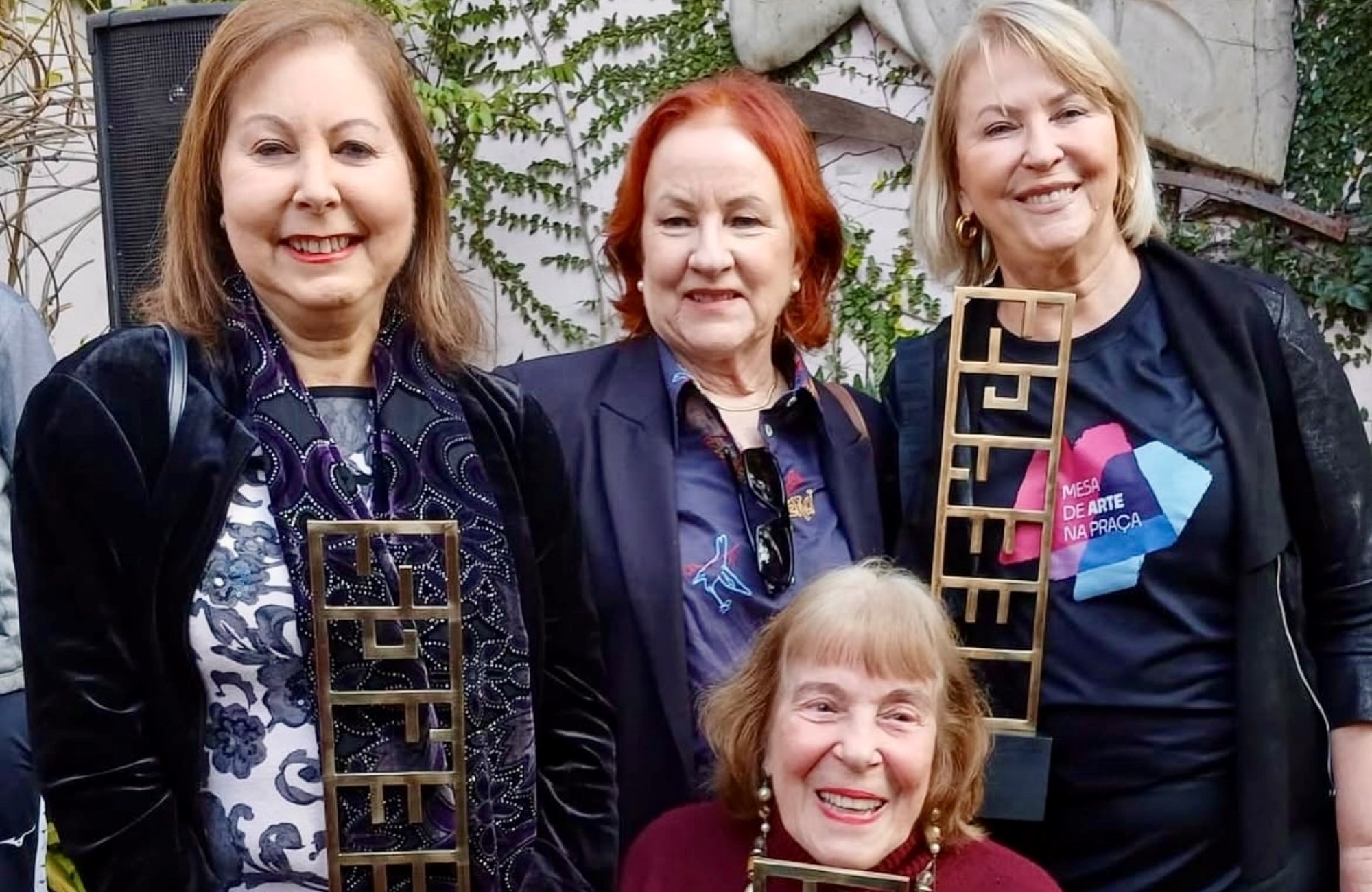 Integrantes do Coletivo A4 Falando em Arte, que promove as ações da Mesa de Arte na Praça, Ana Hauschild e Magna Sperb representaram o grupo na entrega da distinção, recebendo o troféu pelo projeto e também pelas artistas Simone (Bala) Blauth e Andrea Hilgert, que completam o coletivo. “É um reconhecimento que nos enche de orgulho e mostra a importância do projeto como ação que promove a democratização da arte e dá visibilidade aos artistas”, ressalta Magna Sperb.